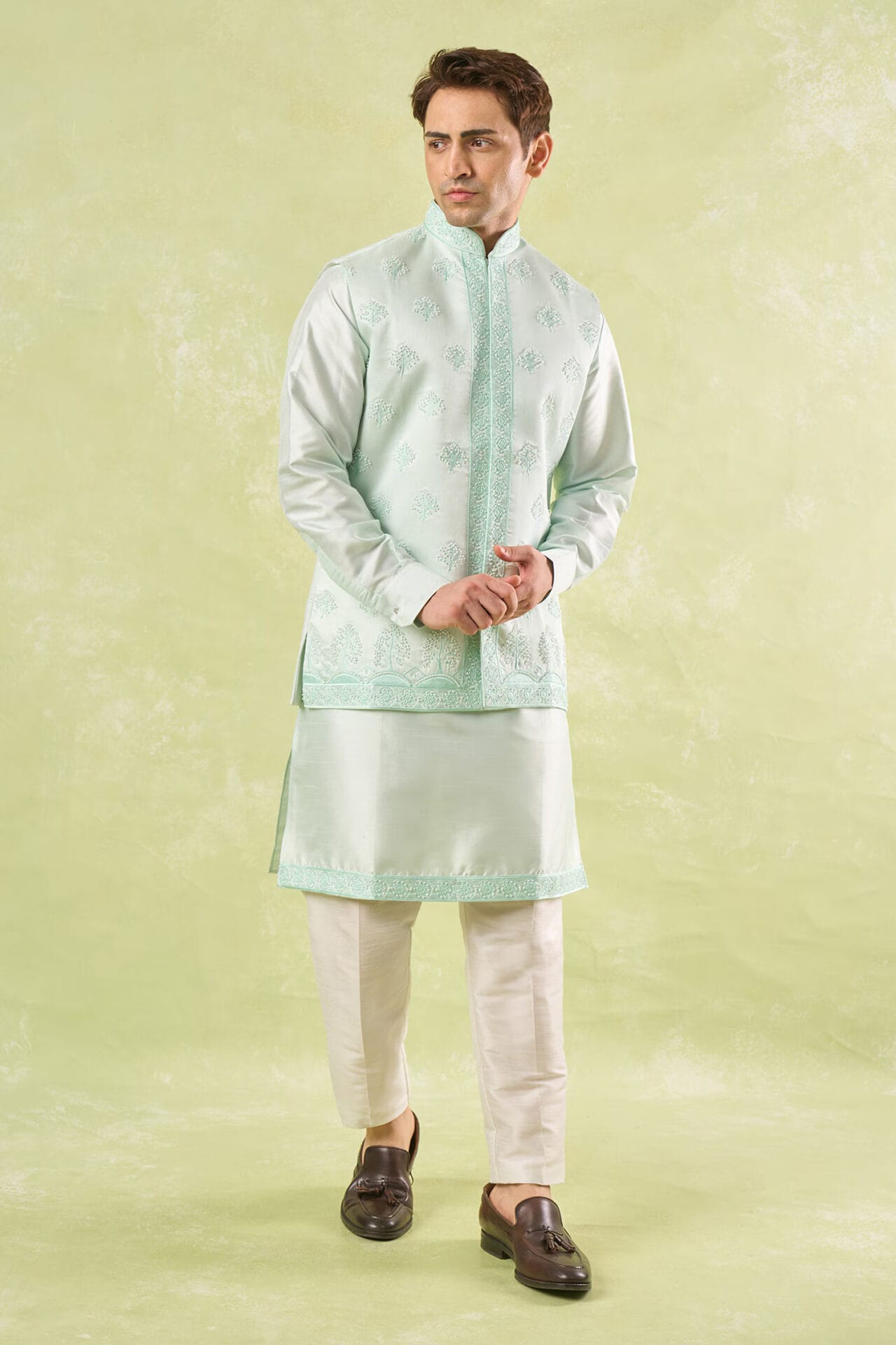Mint Green Embroidered Kurta-Bundi SetMint Green Embroidered Kurta-Bundi Set