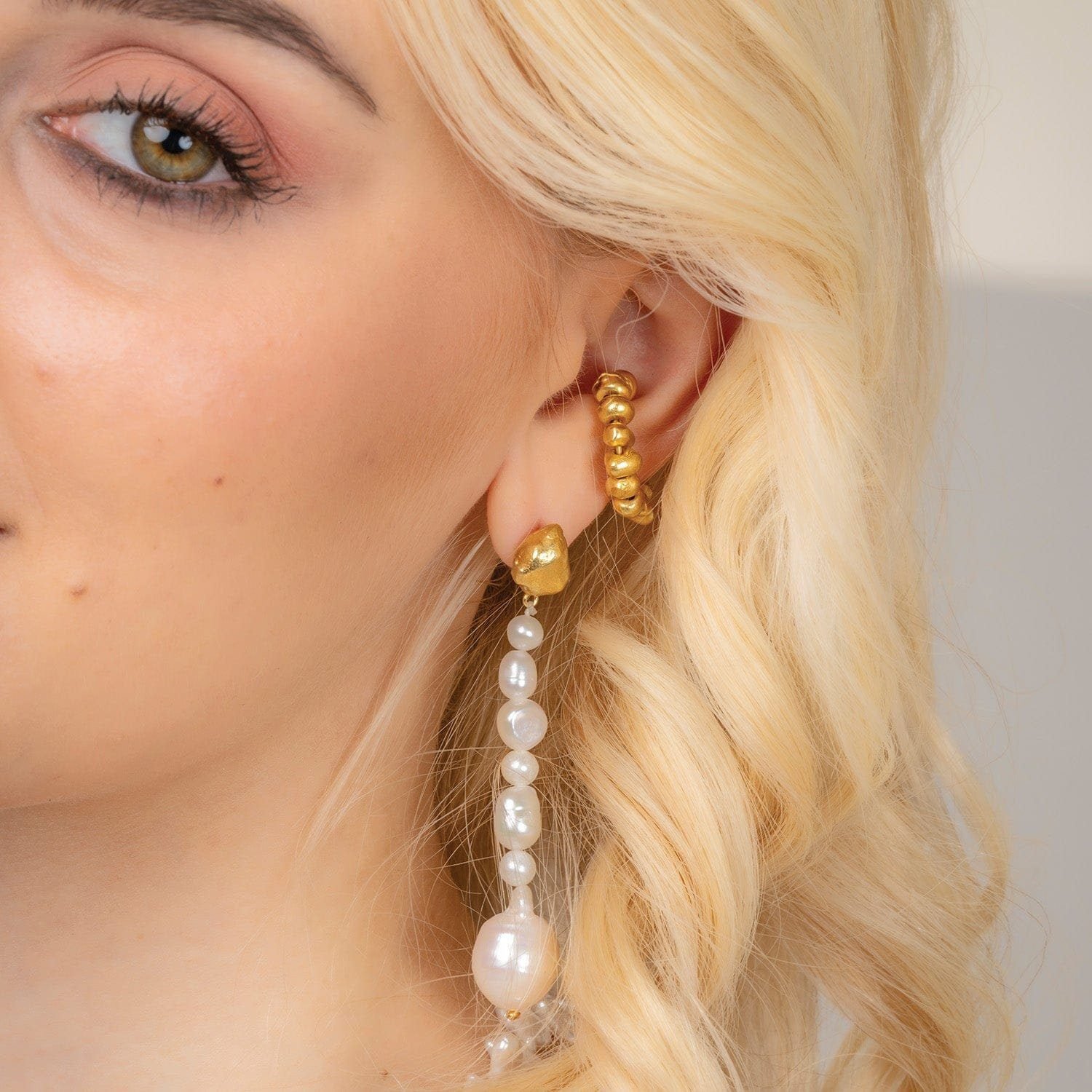 A sculptural marvel that epitomizes artistry and elegance, this mini ear cuff showcases hand-polished uneven metal beads