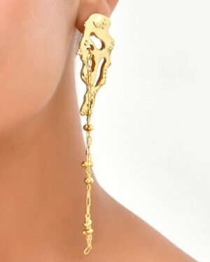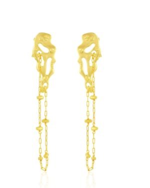 Add a luxurious touch to your accessory collection with the Molten Lava Satellite Chain Gold Earrings, designed for women and girls who love chic, modern designs. Made with premium brass alloy and plated with 22KT real gold, these earrings provide a radiant and durable finish.The molten lava-inspired satellite design combined with the gold chain detail creates a bold statement piece, perfect for elevating your outfit. Whether for daily wear or special events, these earrings are lightweight and versatile, making them ideal for parties, casual wear, and gifting.These elegant earrings are the perfect gift for her and a must-have addition to any jewelry collection.