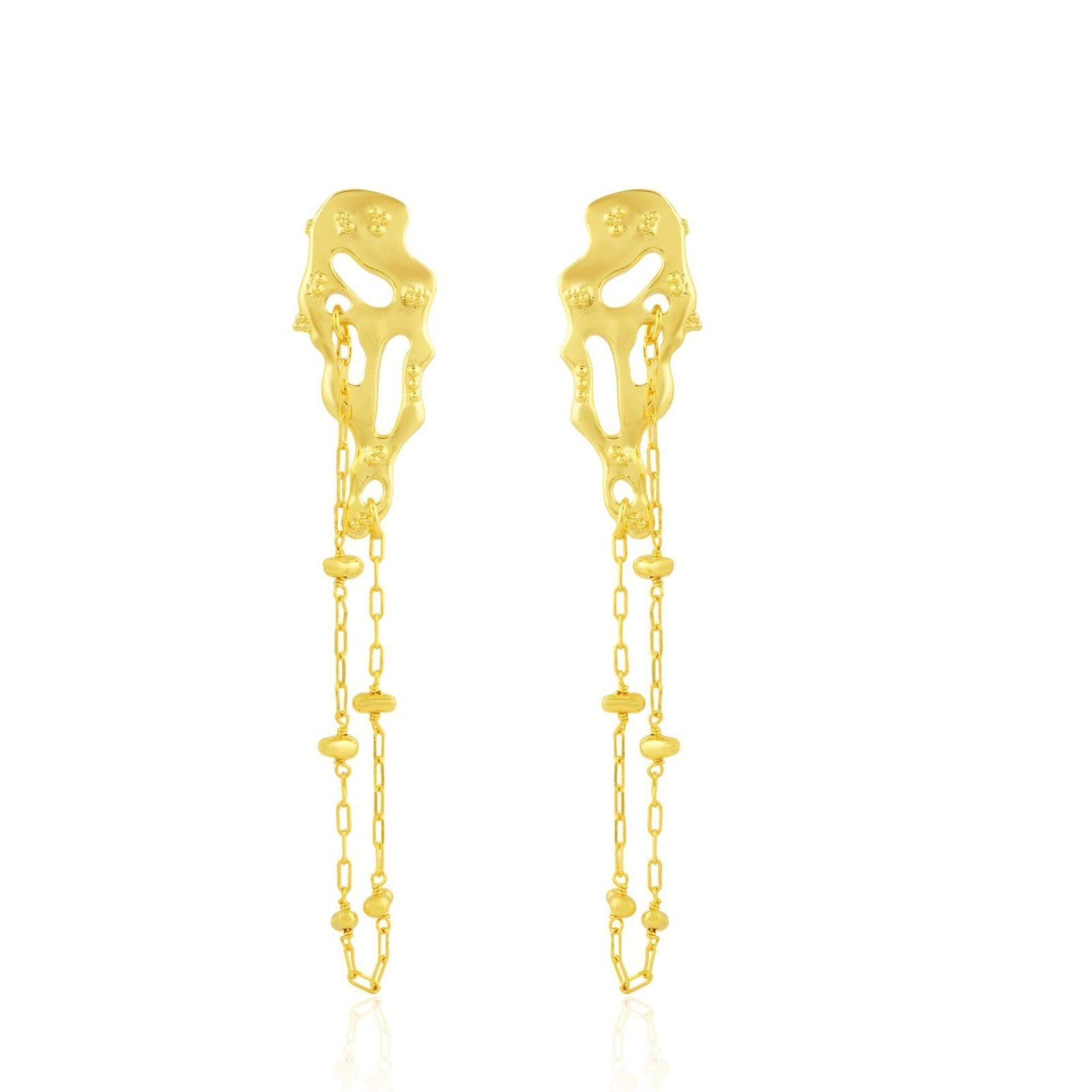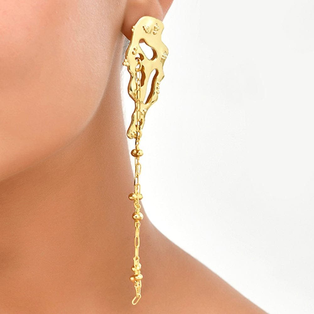 Ignite your style with the Molten Lava Satellite Chain Earrings. These striking earrings feature a bold, molten-inspired