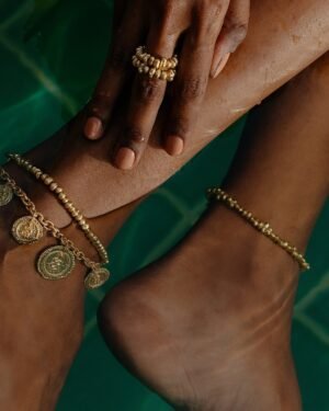 Elevate your style with this Molten Metal Beaded Anklet, designed for girls and women who love contemporary, chic ankle jewelry.Featuring molten metal-inspired beads and a durable, anti-tarnish snake chain, this anklet is crafted from premium brass alloy with 22KT real gold plating. The lightweight, adjustable design ensures comfort for all-day wear.Perfect for casual outings, festive events, beachwear, or parties, this anklet adds a modern statement and subtle glamour to any outfit.Key Features:Molten Metal Bead Design – Trendy & chicAnti-Tarnish & Waterproof Snake Chain22KT Real Gold Plating on premium brass alloyAdjustable, lightweight & durablePerfect for girls & women, casual & festive wear