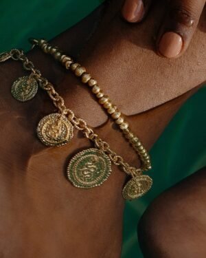 An enchanting tribute to Pratapgarh’s rugged allure, this anklet boasts metal beads crafted in distinctive forms, echoi