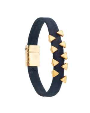Discover the striking elegance of the GOLD SHARK TOOTH Cork Bracelet.' This exquisite piece combines a bold navy blue hue with the luxurious sheen of gold, creating a sophisticated accessory for any occasion. Crafted with meticulous attention to detail, the Cork Bracelet features a unique gold shark tooth charm, adding an edgy yet elegant touch to its design.