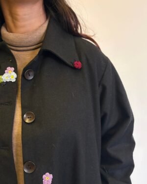 A winter classic, reimagined the Ikriit?m way. This black woollen jacket is lined with soft cotton for warmth and comfort, finished with subtle crochet details that bring hand-touched charm to every stitch. Wooden buttons add an earthy warmth, while the A-line fit gives it a clean, flattering fall.