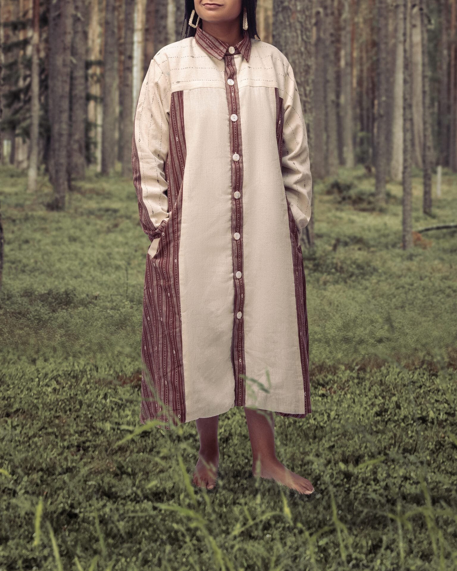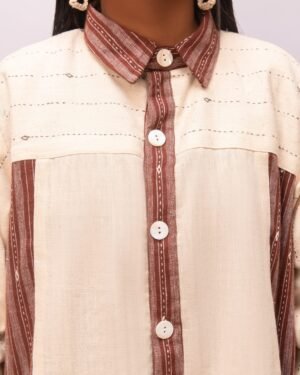Style your everyday in nomadic ease with hand Rabari work where comfort meets statement. WASH INSTRUCTIONS - ONLY DRYCLEAN. Transparency & Certificate: Made in India with care, using natural dyes and produced in small batches with ISO certification. Shipping Courier charges DOMESTIC(IN INDIA) : ?500/KG, INTERNATIONAL : ?3000/KG
