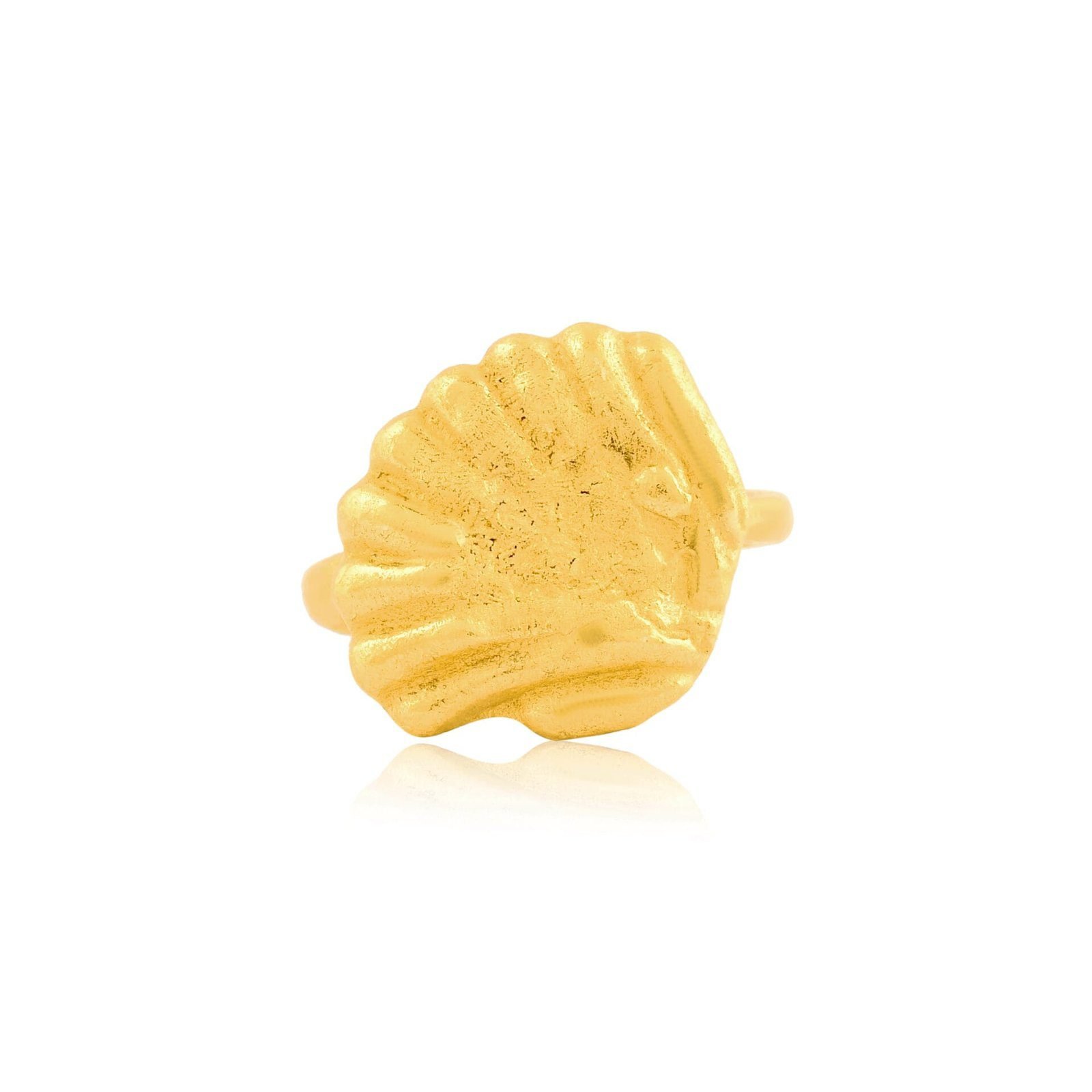 Embrace the beauty of the ocean with the Oasis Shell Ring. Featuring a delicate sea shell design, this 22KT real gold pl
