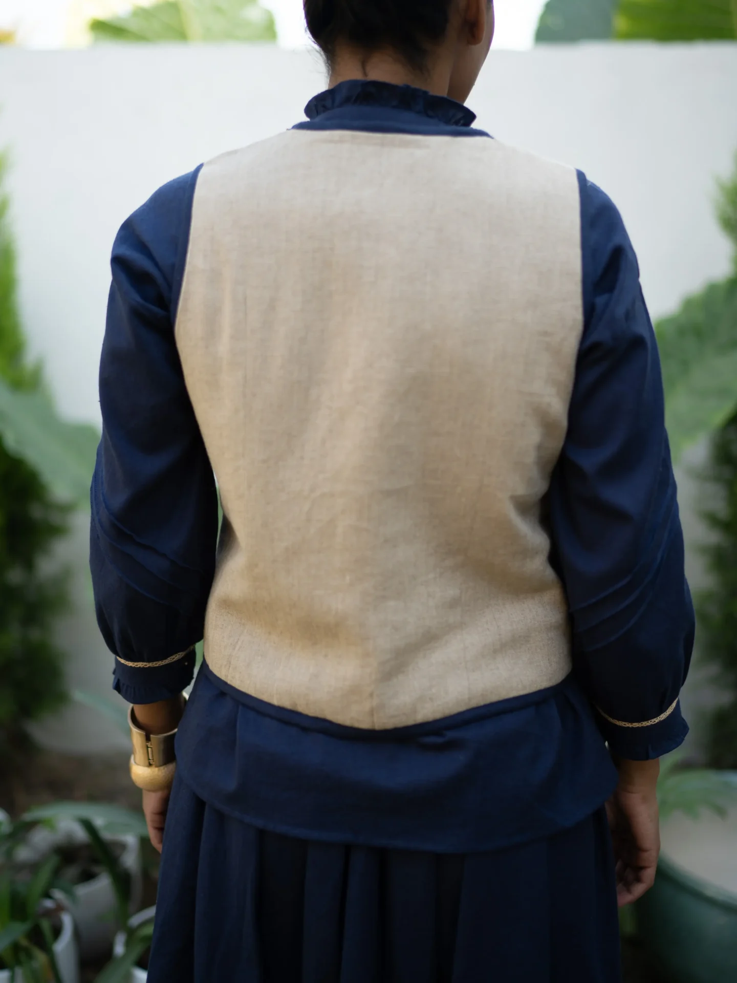 A timeless linen vest quilted jacket crafted for effortless elegance.