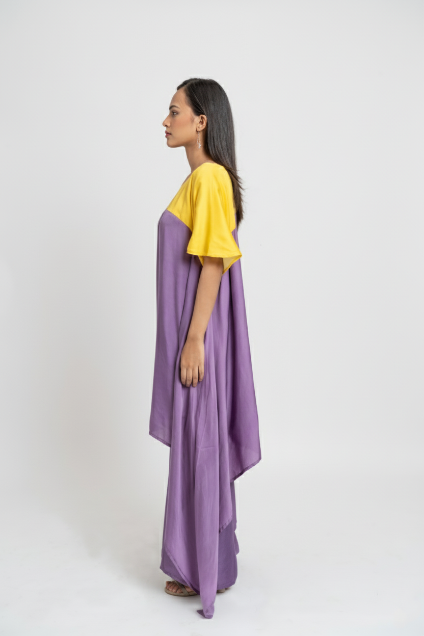 Purple and Yellow Colorblocked Asymmetrical Tunic