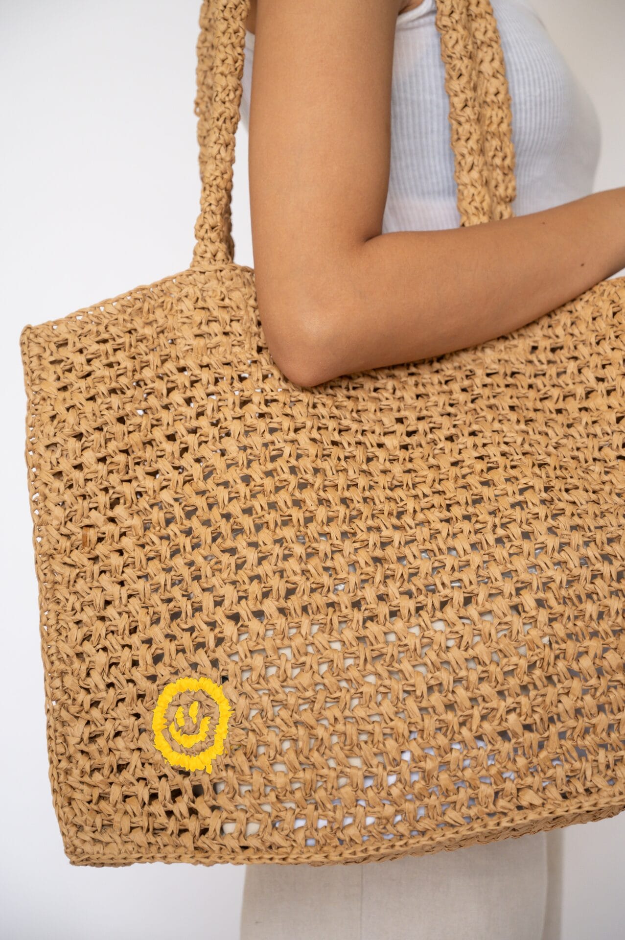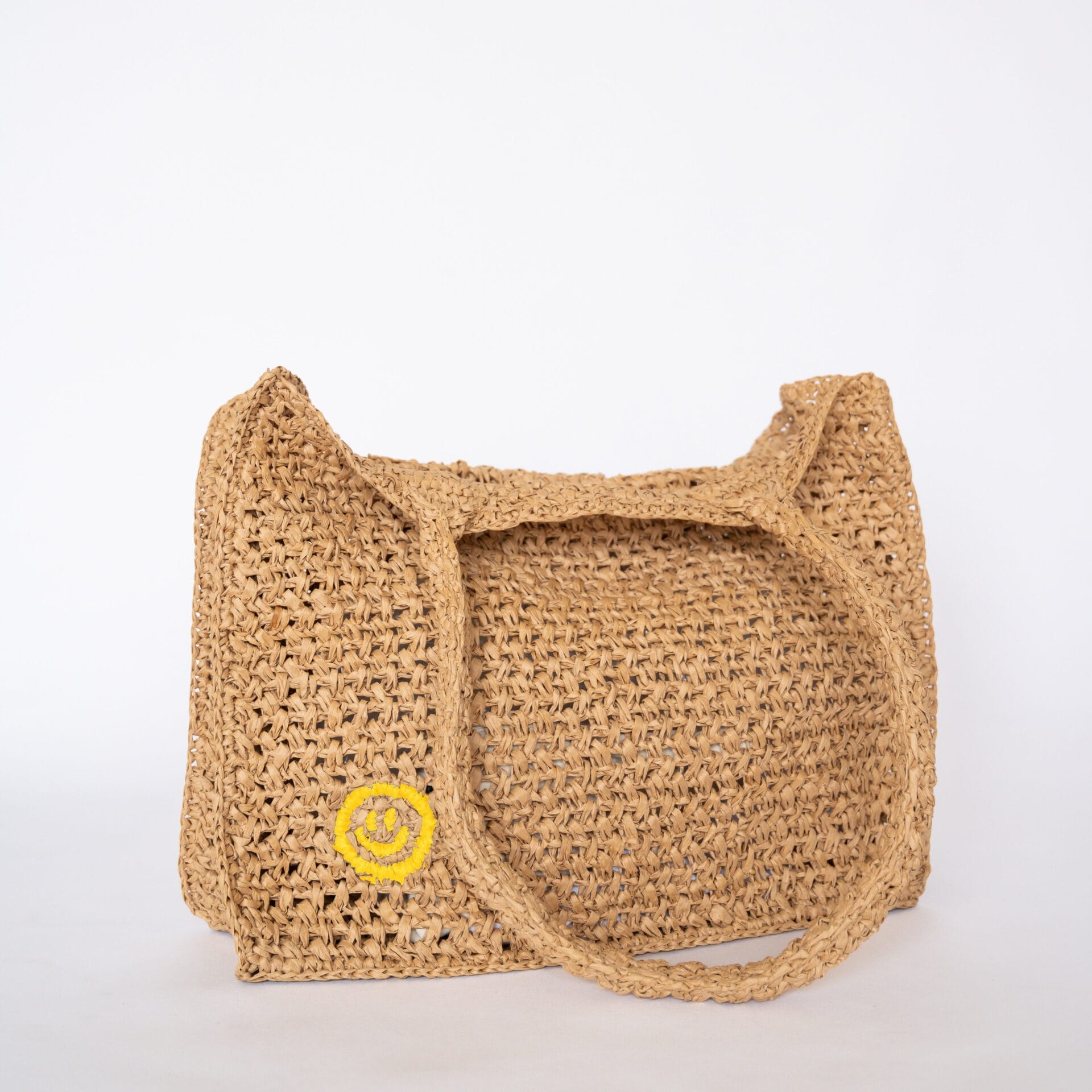 This raffia straw bag captures the spirit of summertime with its beautifully woven design. It?s a chic and sustainable accessory that instantly elevates your outfit. The bag features an open main compartment and two raffia handles, allowing you to carry it as a handbag or wear it over your shoulder, based on your preference.