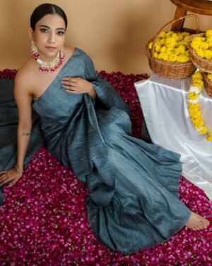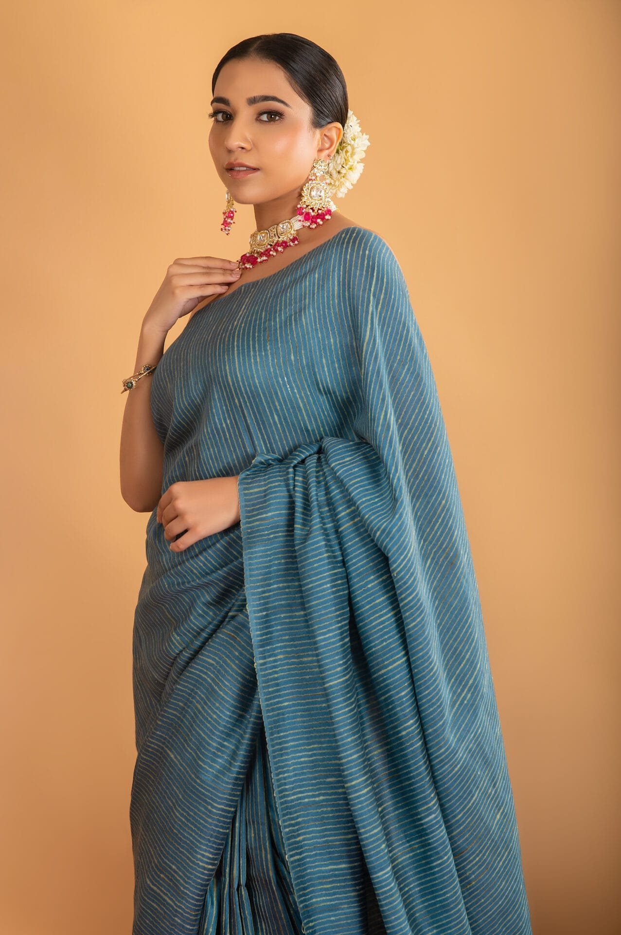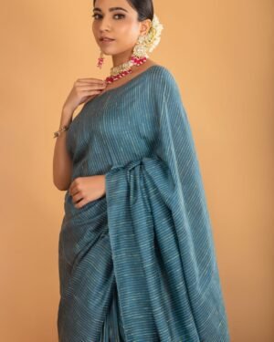 Unveil your festive flair with this stunning munga cotton saree woven with golden striped threads that catch the light beautifully. WASH INSTRUCTIONS - ONLY DRYCLEAN. Transparency & Certificate: Made in India with care, using natural dyes and produced in small batches with ISO certification. Shipping Courier charges DOMESTIC(IN INDIA) : ?500/KG, INTERNATIONAL : ?3000/KG