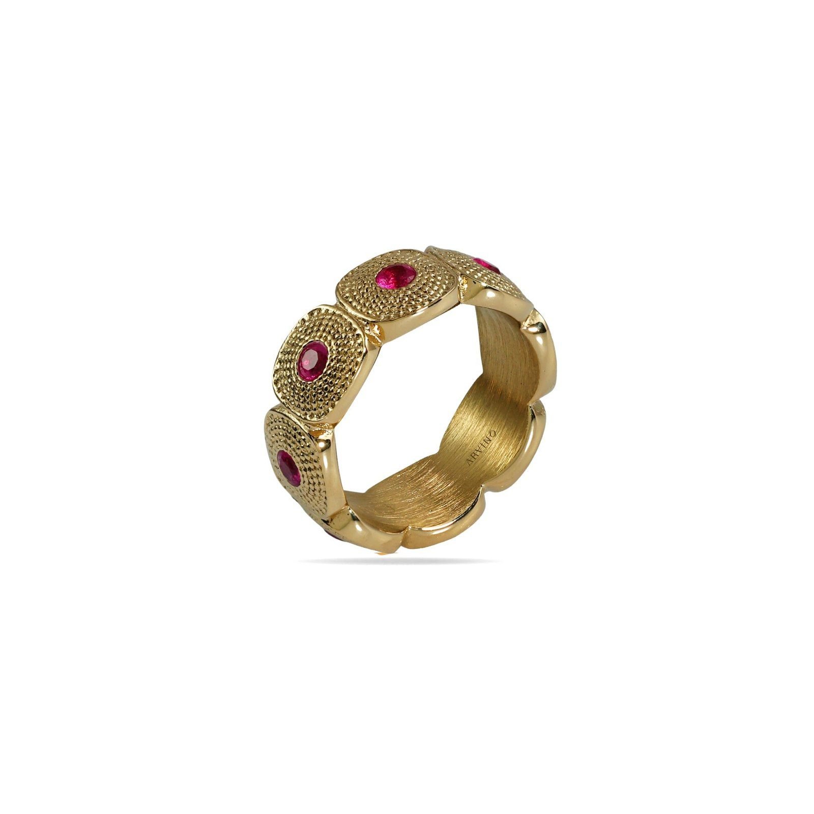 A classic ruby eternity band featuring a continuous row of deep red stones, finished with 22KT real gold plating on prem
