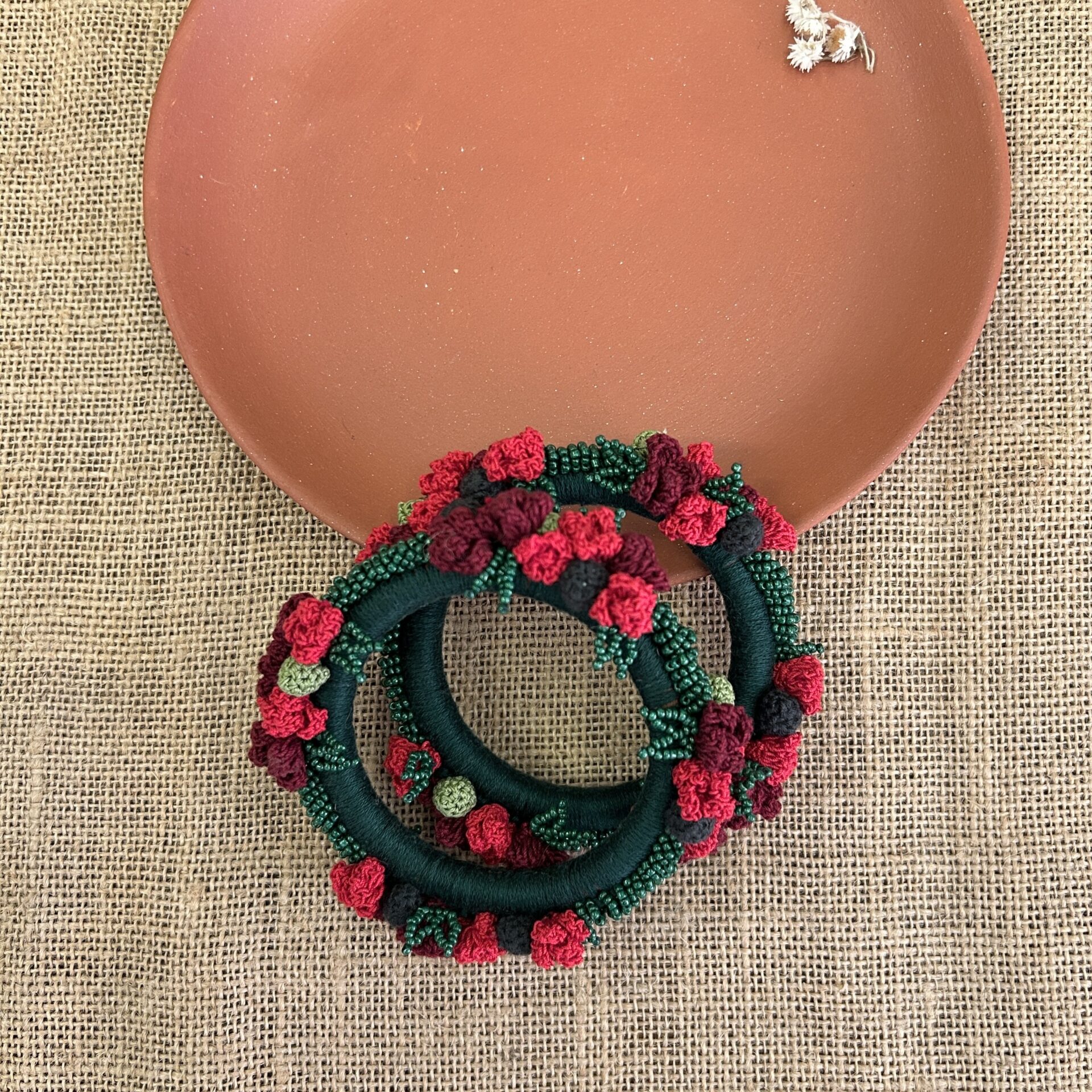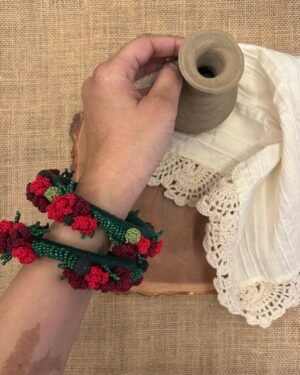 Soft petals meet woven charm ? our Rose Bangles are hand-crocheted with delicate blooms that rest gently on your wrists. Inspired by the quiet grace of garden mornings, each bangle carries the warmth of handmade craft and the joy of everyday adornment.