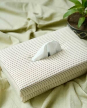 Ruhe stands for peace and symbolises Khadi - a profoundly delicate fabric to work with and, is steeped in Indian history. Our handcrafted khadi-cotton tissue box features minimalistic stripe pattern blended with an eco-friendly fabric, making it a thoughtful and conscious choice for your home.