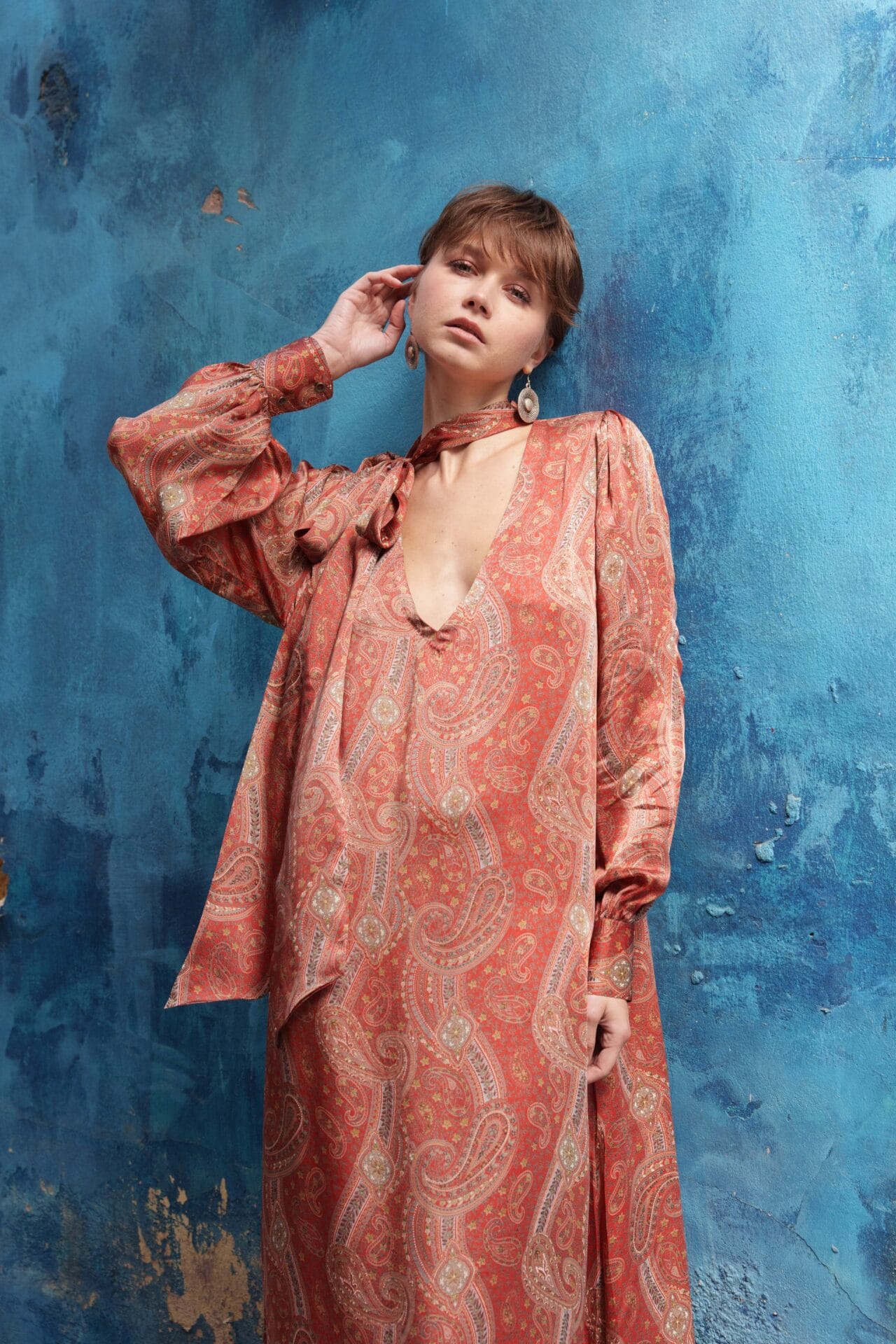 rust paisley satin kaftan