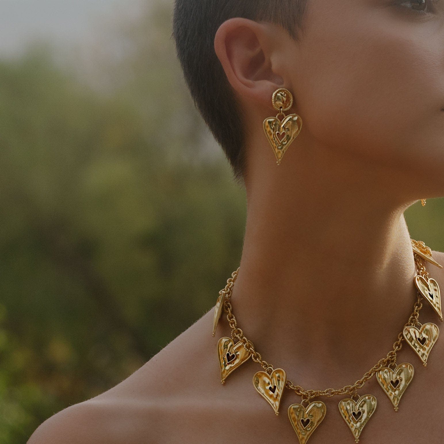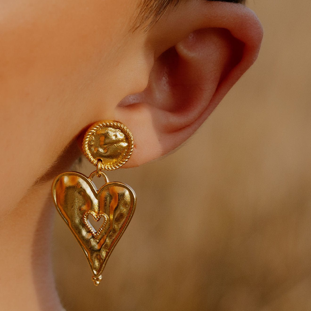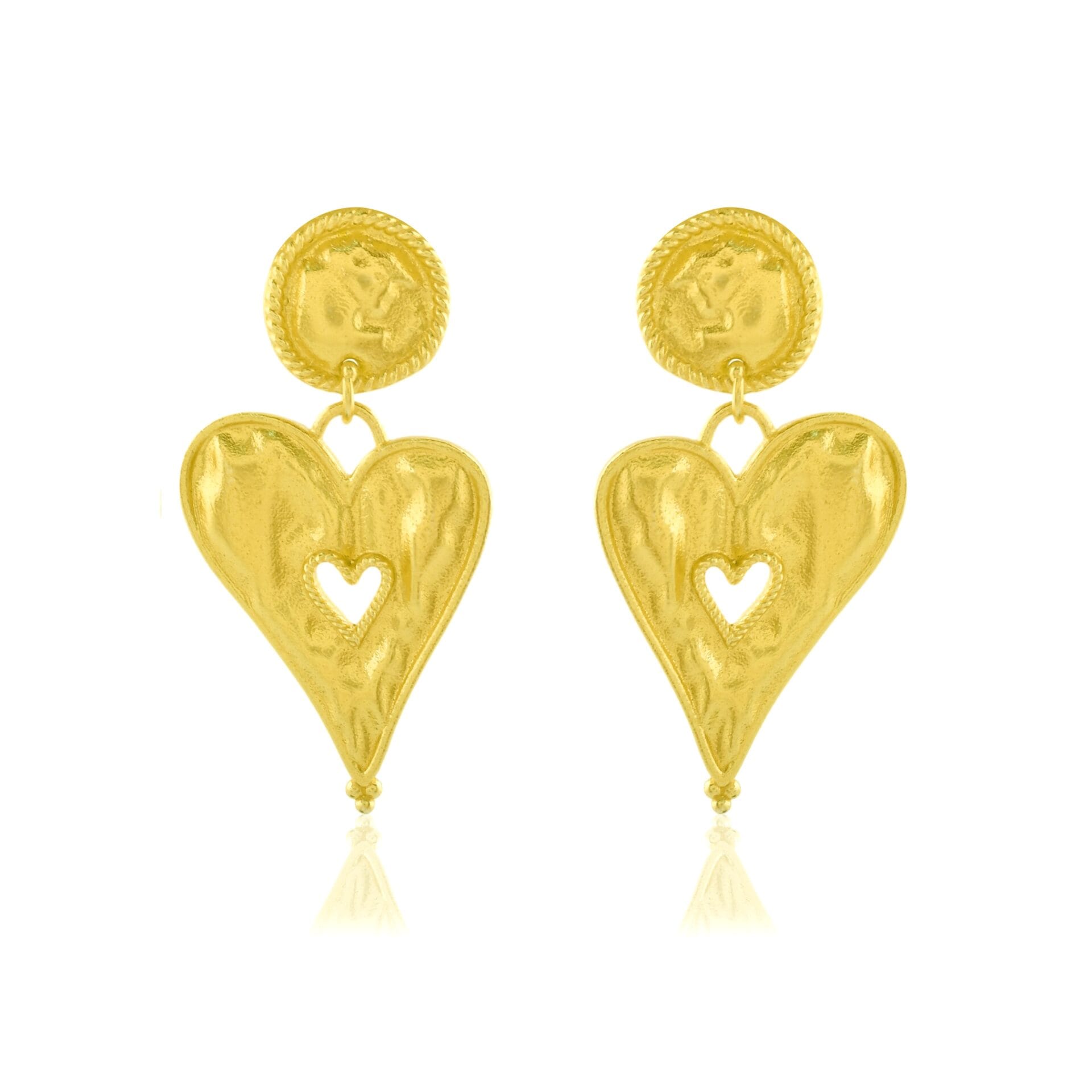 Sculpted Heart Gold Earrings for Women and Girls