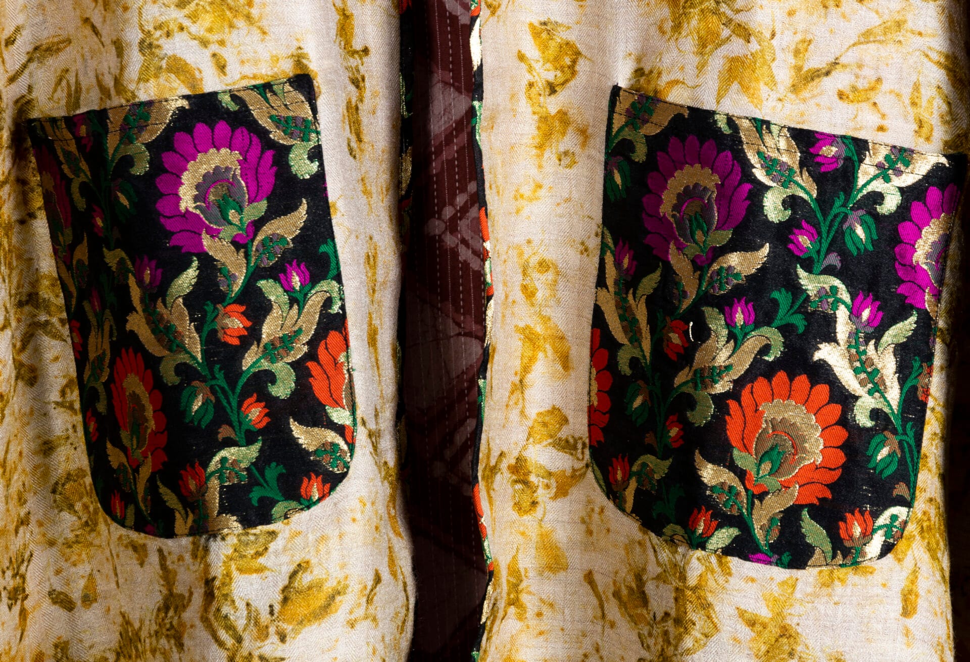 Bageeya “Sursli Sundri” Reversible Khadi Tussar cotton Pasban Jacket | Crafted with Marigold and Block Print detailed with Brocade pockets