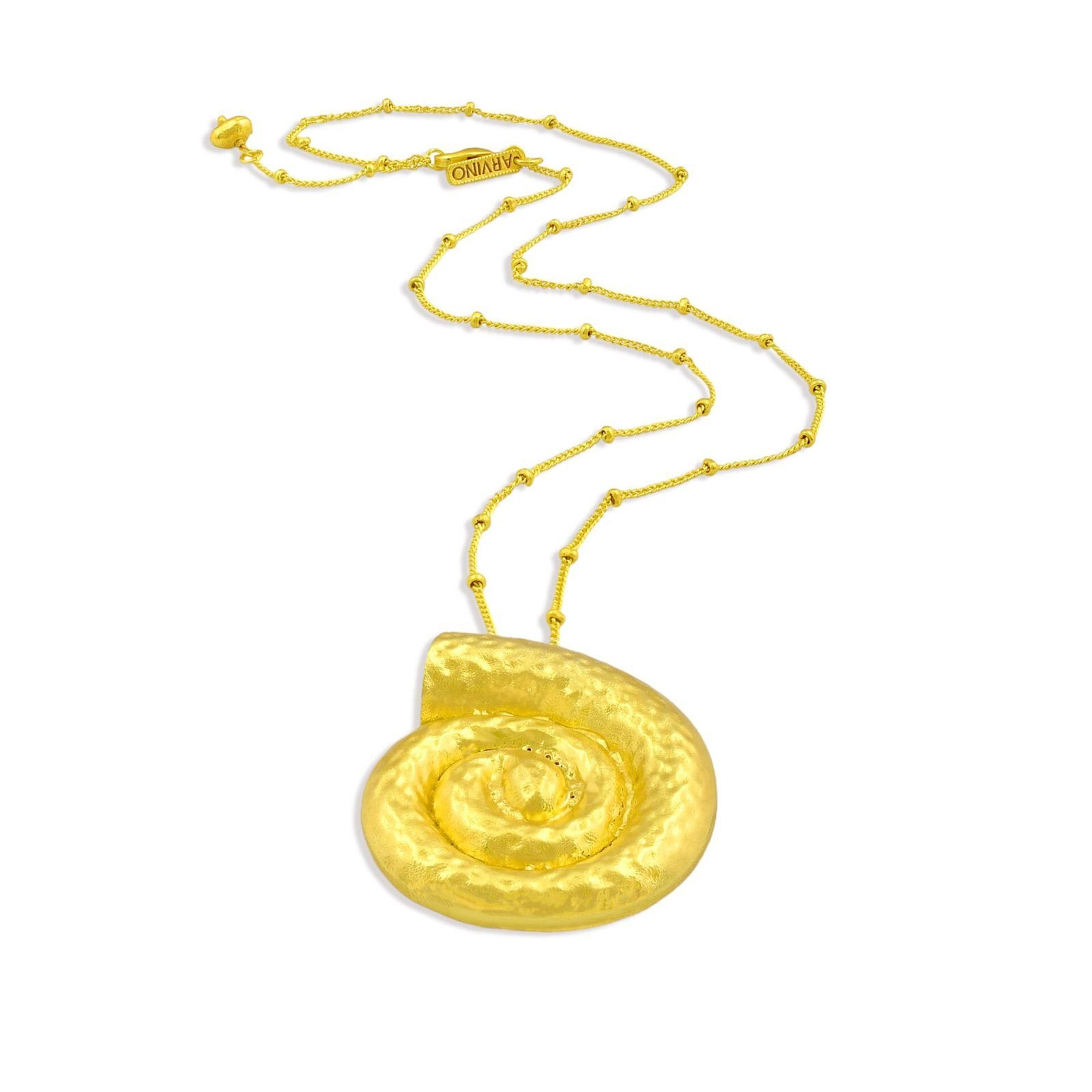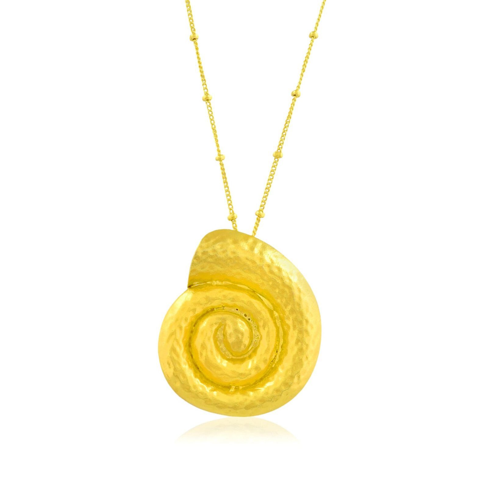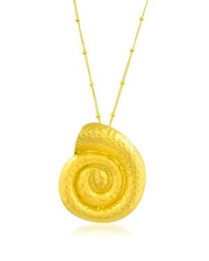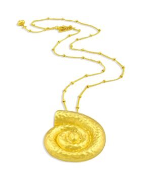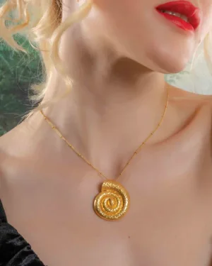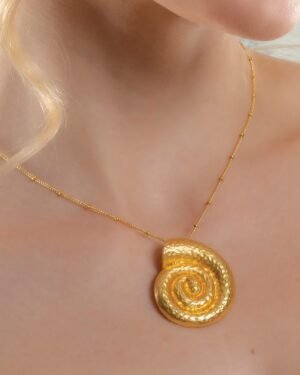 Bring the beauty of the sea to your jewelry collection with the Textured Coral Shell Pendant Necklace. Designed with an organic coral shell texture and spiral Sea Gold form, this necklace reflects the natural elegance of ocean elements. Each piece is handmade using premium brass alloy and finished with 22KT real gold plating, ensuring durability, shine, and a luxurious appearance.The spiral pendant symbolizes flow, renewal, and harmony, while the textured surface adds depth and artisanal character. This combination makes the necklace perfect for those who appreciate nature-inspired, contemporary statement jewelry.Lightweight and comfortable, it’s suitable for daily wear, vacations, festive occasions, and evening styling. Wear it solo for an elegant statement or layer it with other necklaces for a modern, curated look.This necklace is a beautiful gift for women who love coastal aesthetics, handcrafted designs, and unique jewelry pieces. Ideal for birthdays, anniversaries, celebrations, or self-gifting, it effortlessly balances artistic craftsmanship