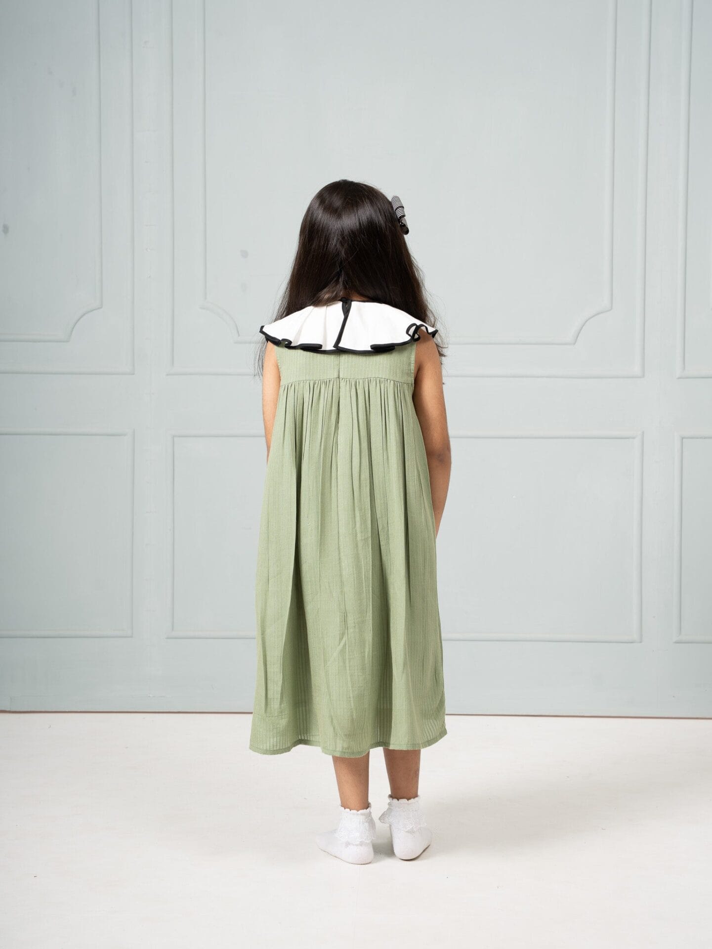 Collar fastens with a single back fabric button
