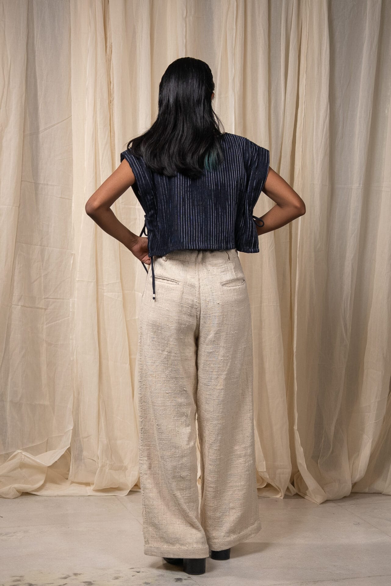 Crafted from 100% cotton fibres and natural materials, this multifunctional top is made from azo-free dyed handwoven cotton from West Bengal. Designed with detachable sleeves, it can be worn as a long-sleeved top or converted into a sleeveless bib using drawstrings on the sides.