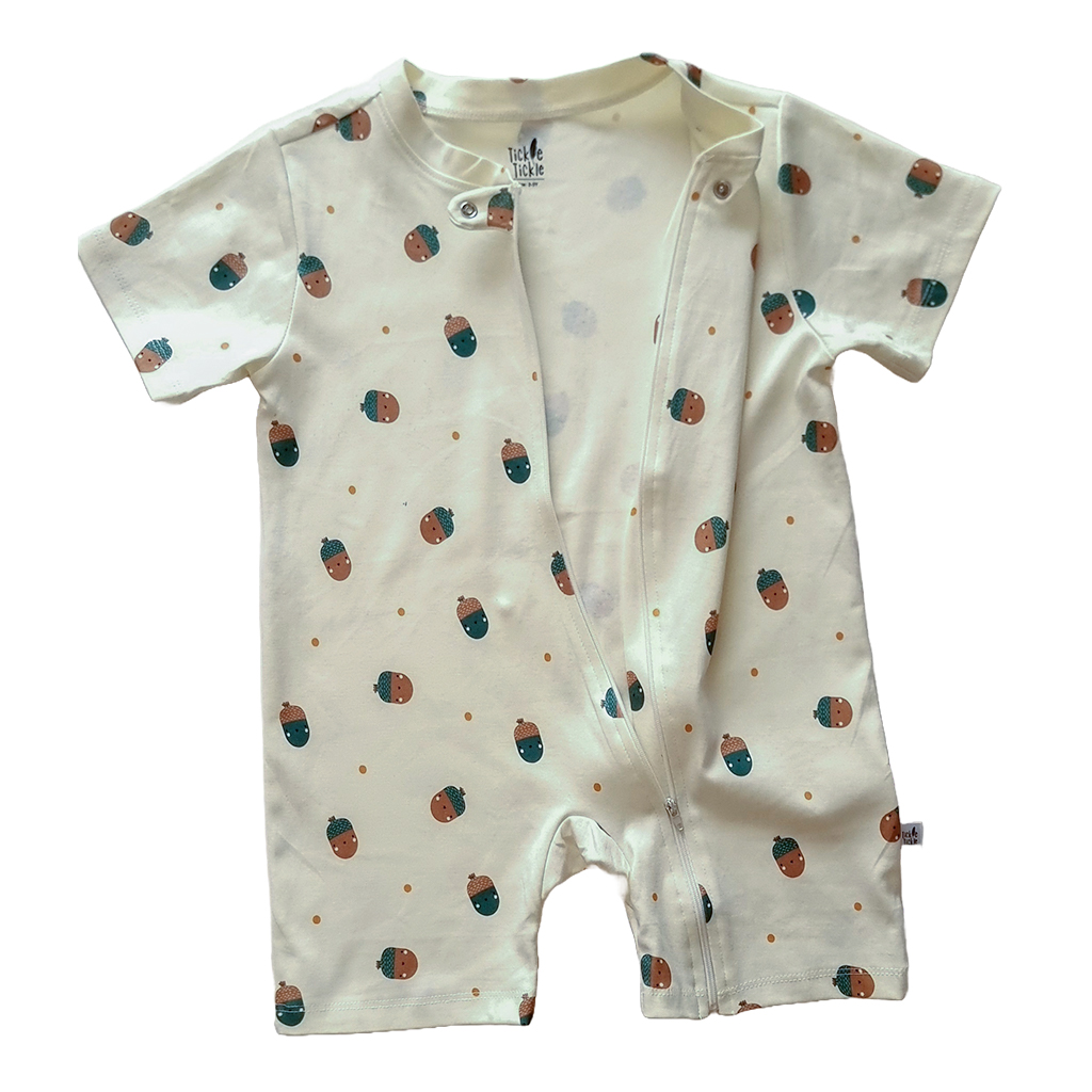 Tickle Lil Peacan Organic Short Zip Playsuit Newborn upto 2 Years