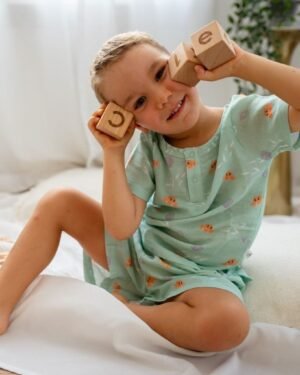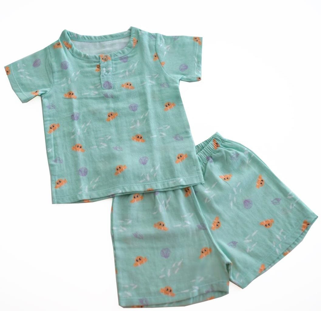 100% organic muslin cotton shorts and tshirt setLightweight and luxuriously soft, perfect for all weathers. Comfort fit for daily wearCute Neutral PrintsPoppers all the way down for easy change
