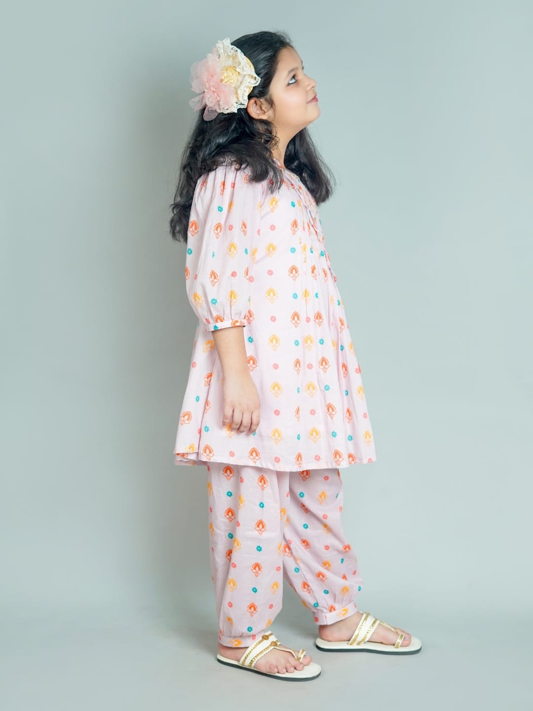 Tiny Trendsetter – Pastel Pink Kurta Set for Girls