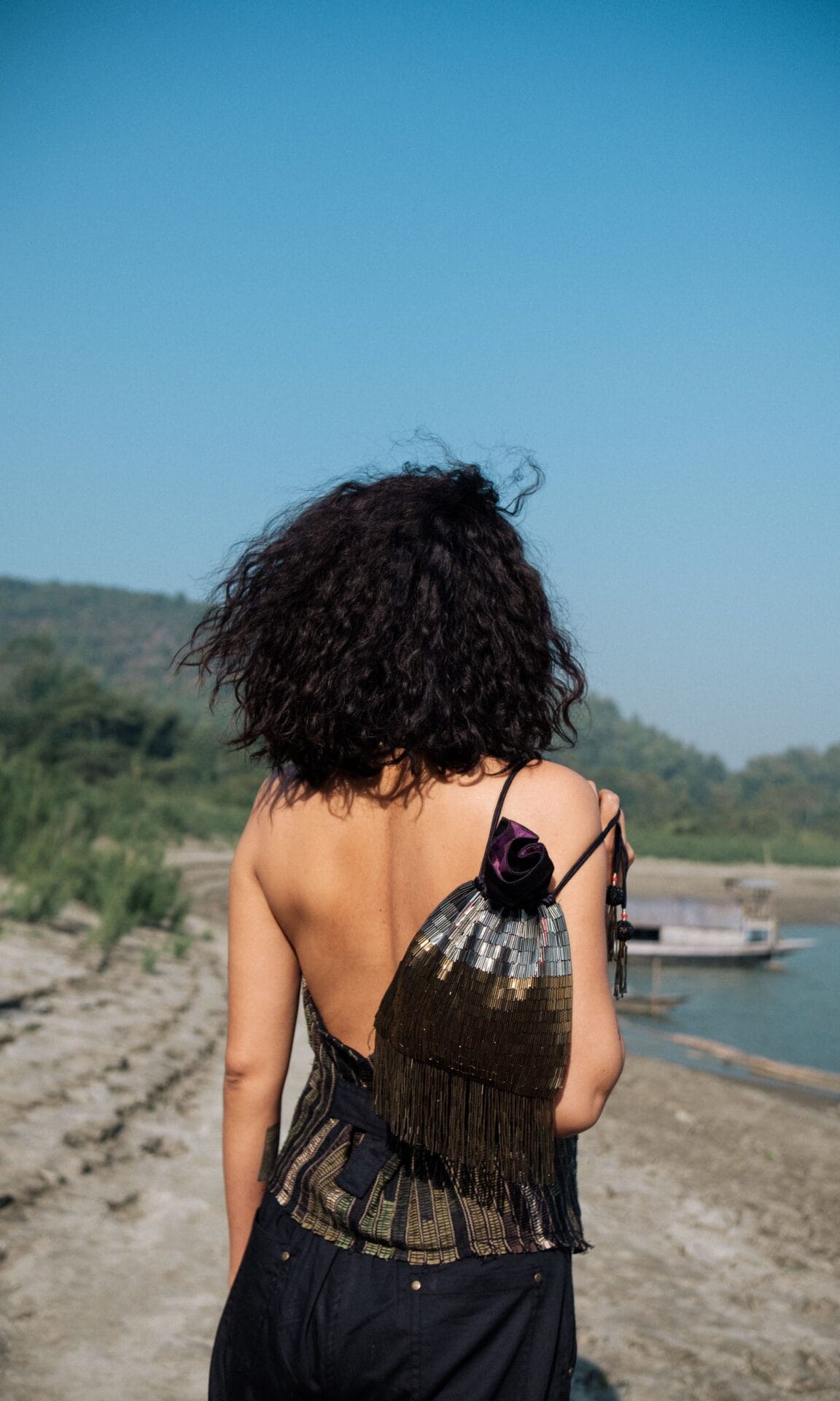 This vest is designed from upcycled fabric, made using post production waste and can elevate any look.It can be worn as is or over a shirt.It pairs perfectly with our flared pants.It can be dressed up or down for each occasion.