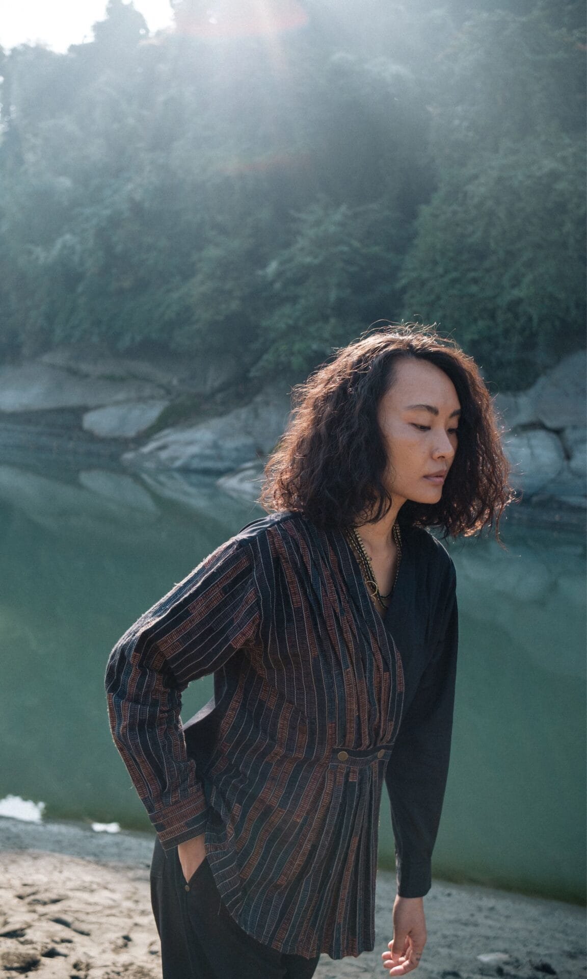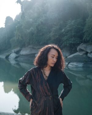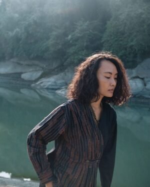 The garment is made from hand woven upcycled fabric and so the color might vary slightly for each batch.