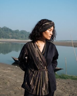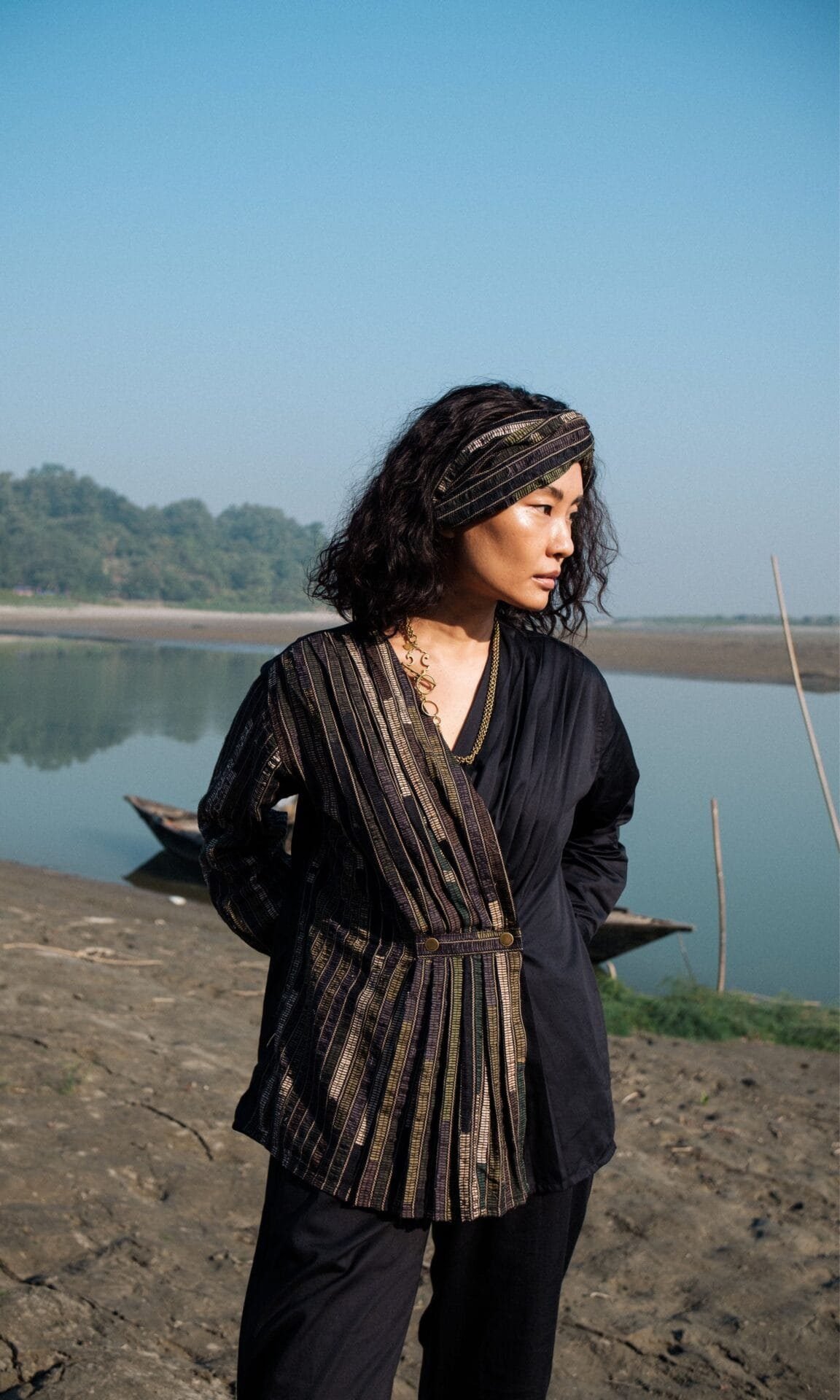 The garment is made from hand woven upcycled fabric and so the color might vary slightly for each batch.