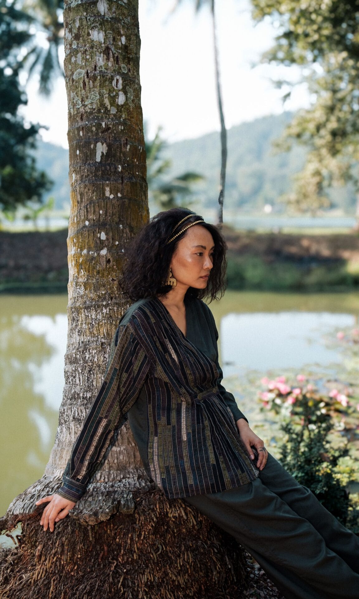 The garment is made from hand woven upcycled fabric and so the color might vary slightly for each batch.