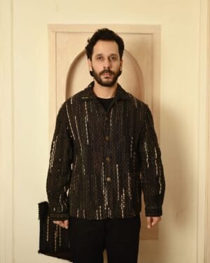 This collar jacket is designed from upcycled fabric, made using post production waste and can elevate any look.