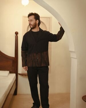 This oversized blazer designed from upcycled fabric, made using post production waste is the perfect balance of comfort and style to elevate your wardrobe.