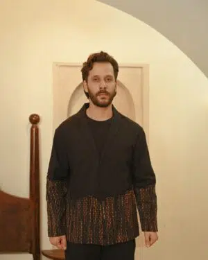 The garment is made from hand woven upcycled fabric and so the color might vary slightly for each batch.