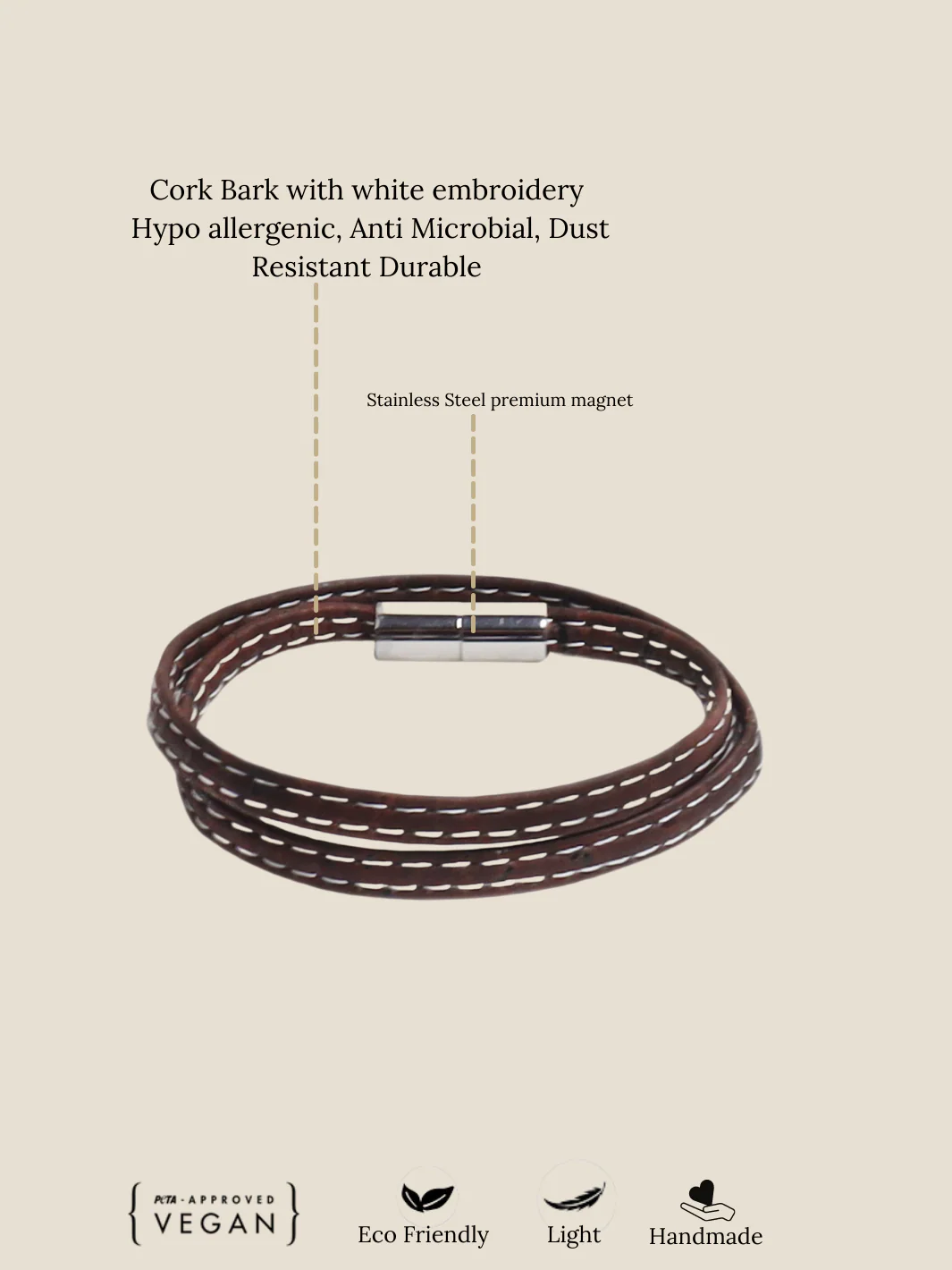 A standout addition to your office wear or weekend smart casual is our Loop Bracelet in genuine Cork with a self-embroidered pattern. Wrap it around your wrist with a watch or keep it bare, it is a conversation starter and adds a new dimension to your personality.