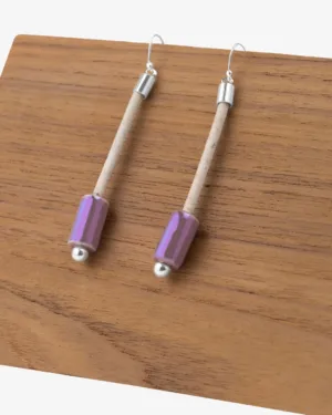 The Verbena earring is handmade from white cork and adorned with a porcelain stone. The earrings add a distinctive touch to your daily attire, reflecting a pleasant summer evening.