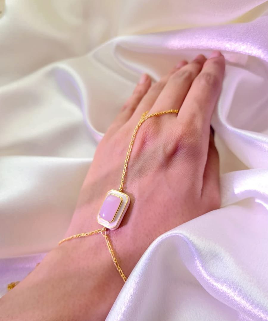 The hathfool bracelet with natural gemstone or the intricate details of enamelling, it is handcrafted in 92.5% silver, with thick gold plating. It has a ring clasp lock that can be fixed easily by you., Plating: Gold Plated, Metal Type: 92.5% Sterling Silver, Enamel / plating / gemstone: Natural gemstone Rose Quartz, Lock Mechanism: Ring clasp lock, Measurement cm : gemstone : 1.8 cm x 1.2 cm / Full length 6 cm, Measurement inches: Gemstone : 0.70 x 0.47 inches / Full length 2.36 inch, Care Instruction: Keep away from water, perfume and other liquids. Do not use any cleaning agents. Clean when storing in the provided pouches. Store them in moisture free areas and keep them away from water and liquid fragrances.