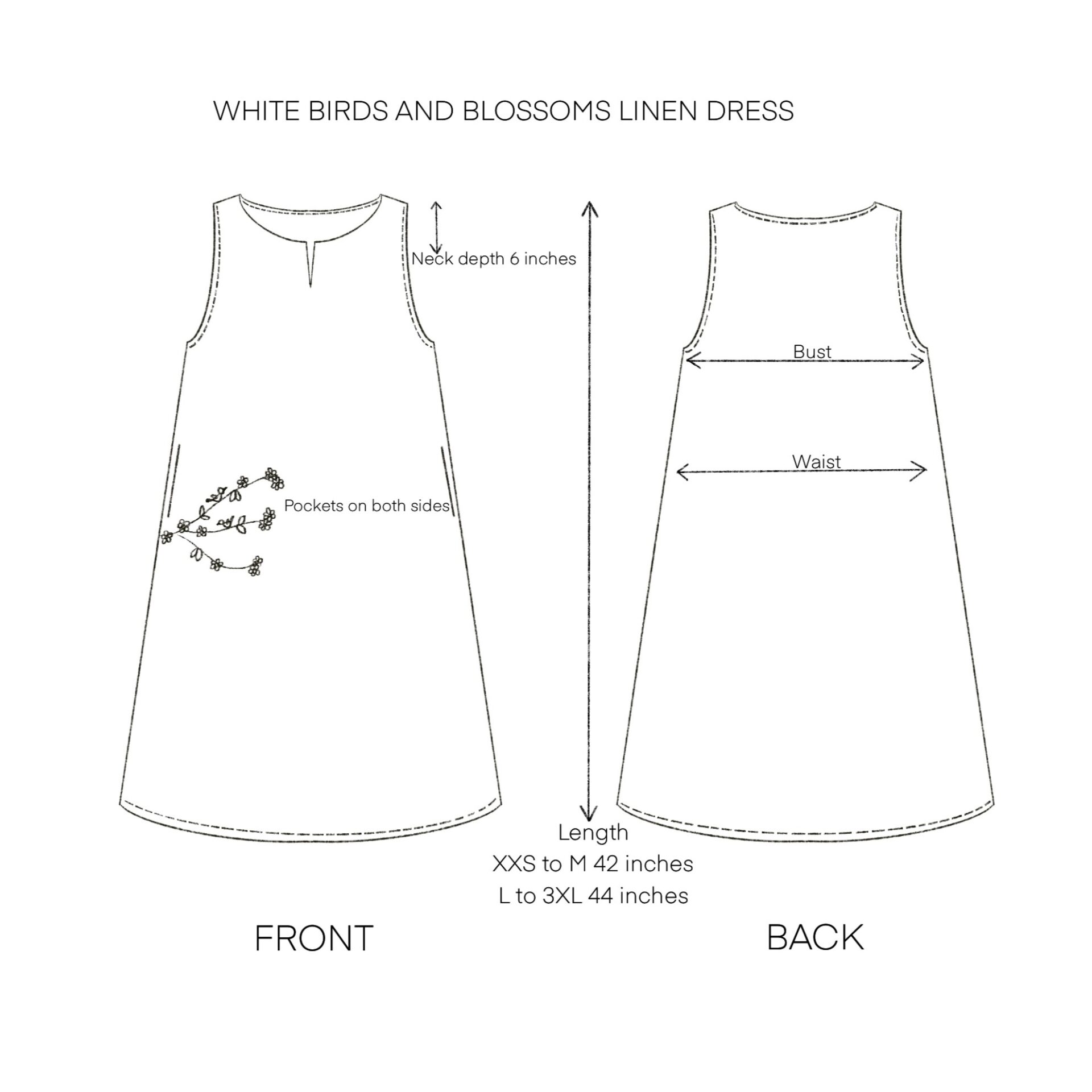 White Birds & Blossoms Linen DressWhite Birds & Blossoms Linen Dress