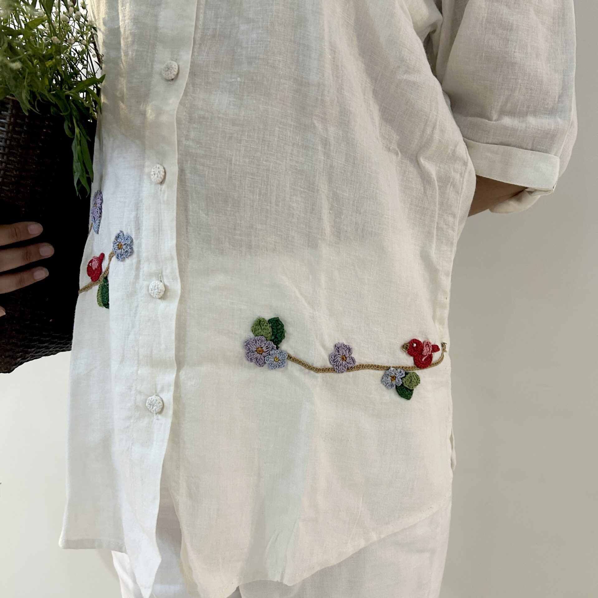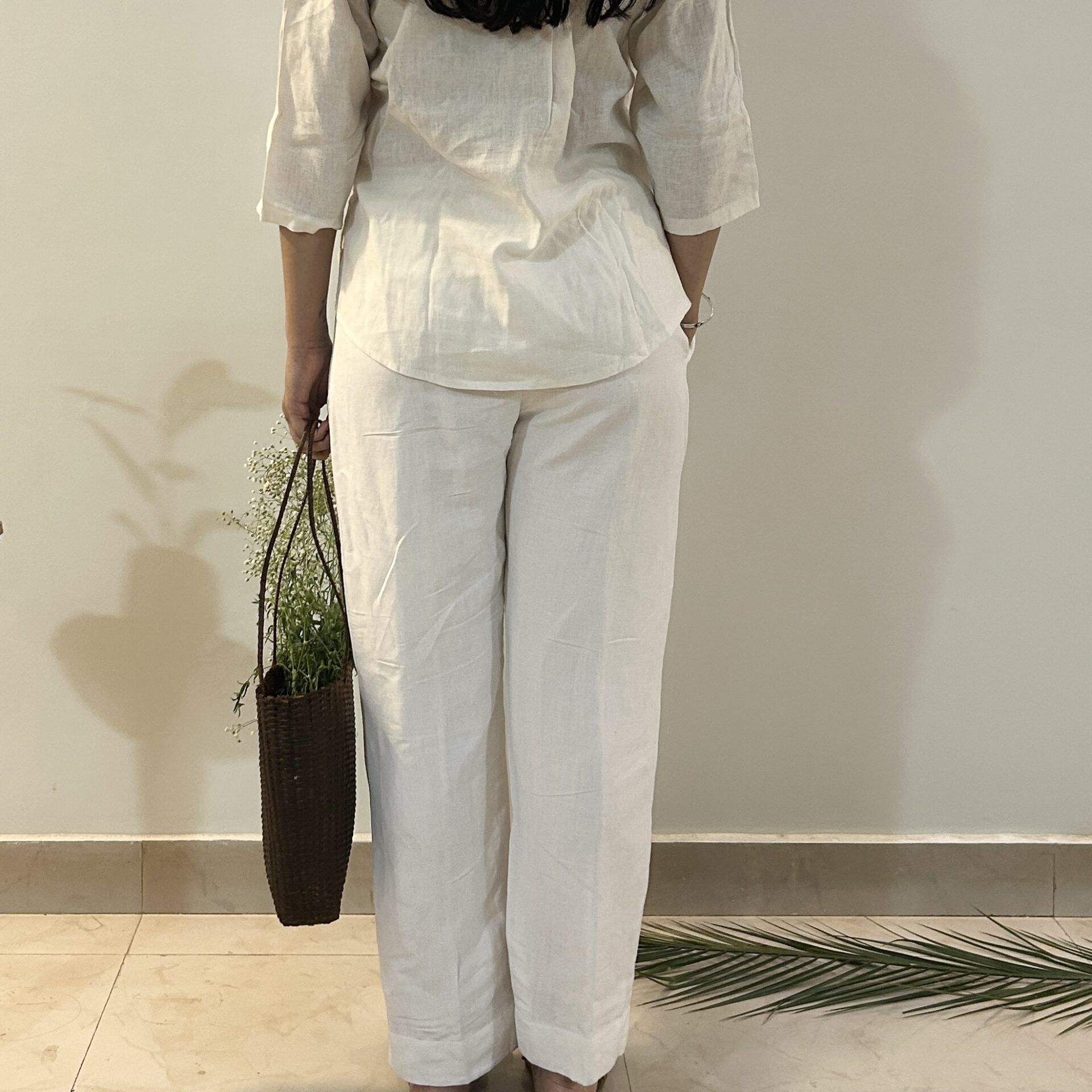 Refresh your wardrobe with the White Serene Stitch Linen Set, featuring the White Serene Stitch Linen Shirt and Trouser for a cohesive and elegant look.