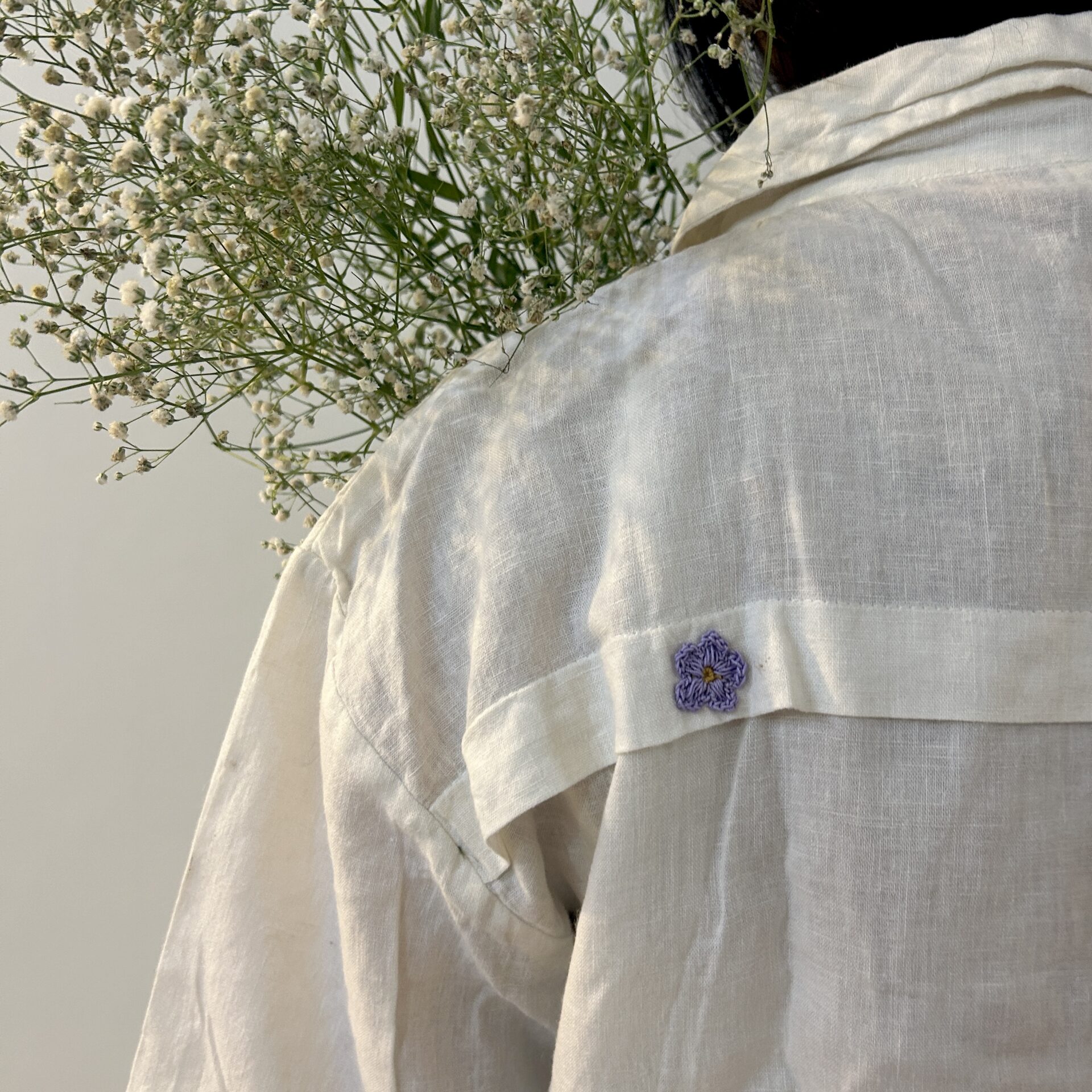 Design: Front placket with crochet buttons, shirt collar, and 1/4th sleeves