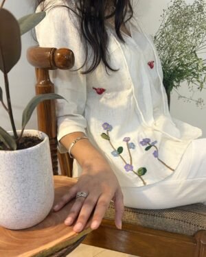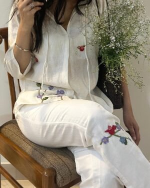 Embrace classic elegance with the White Serene Stitch Linen Set, featuring the White Serene Stitch Linen Top and Trouser for a beautifully coordinated outfit.