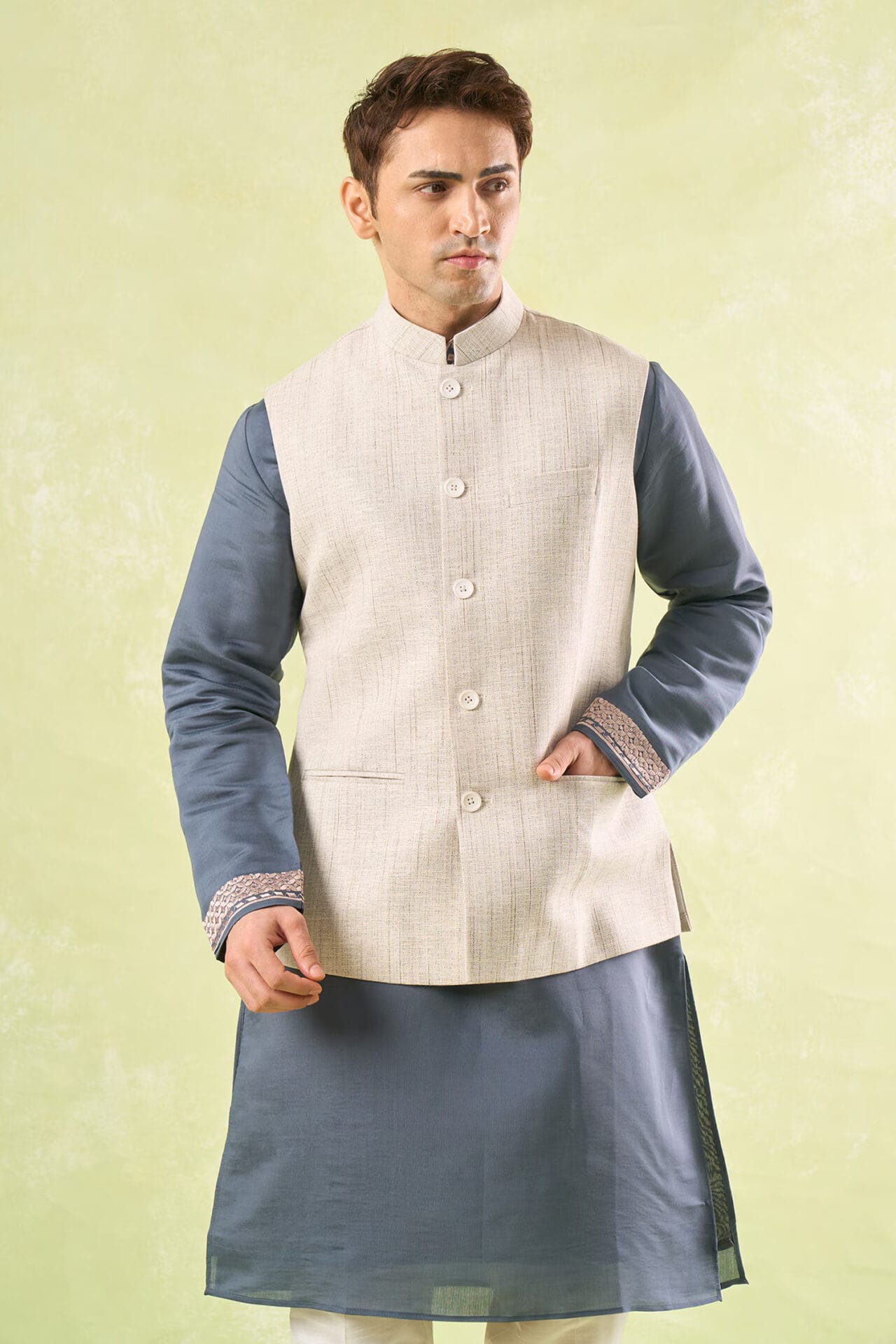 White tweed texture based jacket, enhanced with two hand pockets and one pocket square pocket.