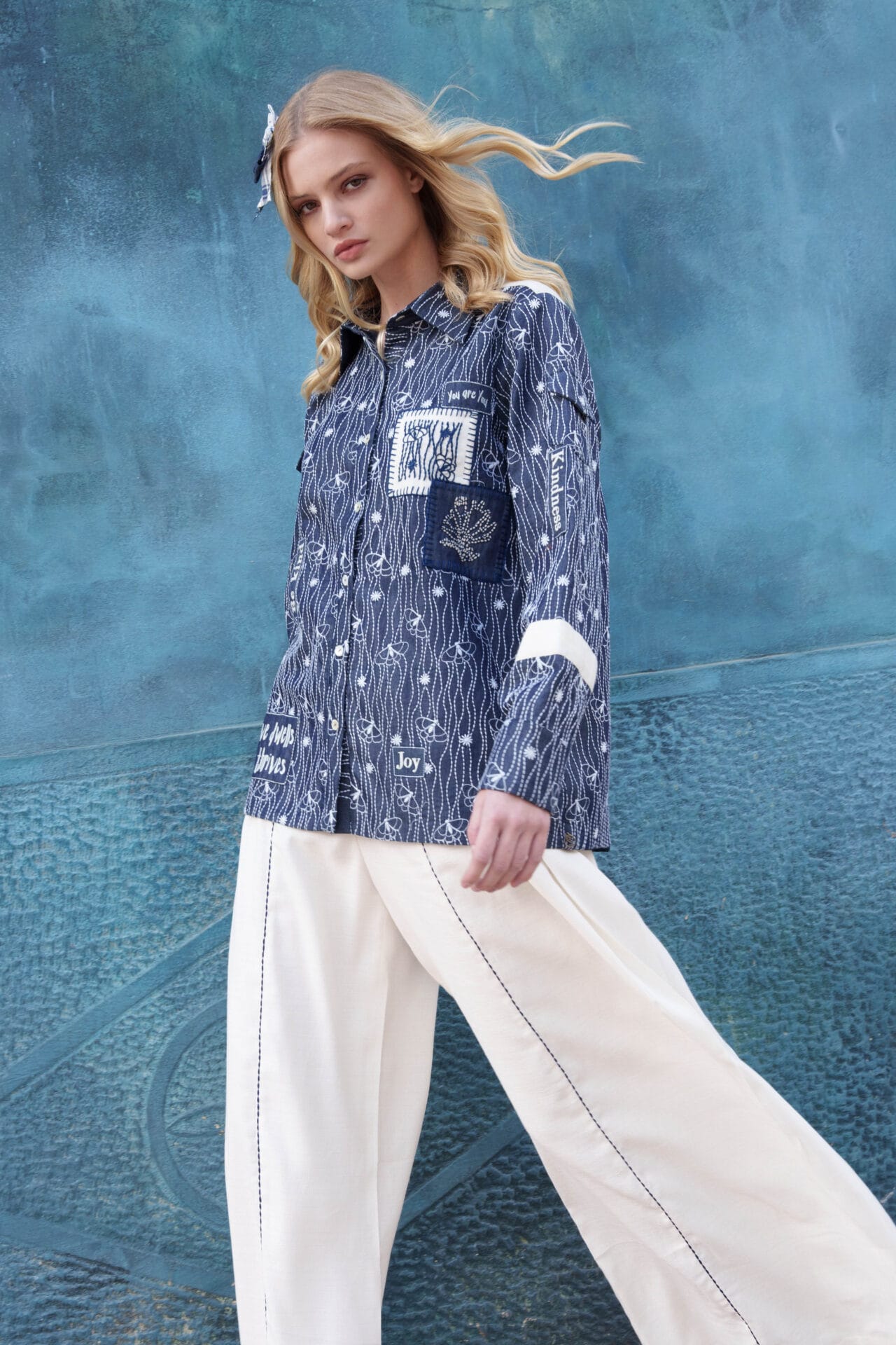 Lilac floral printed with lace insert front open dress with tie up belt with Ecru rayon smoking midi dress with scallop details