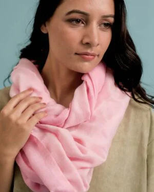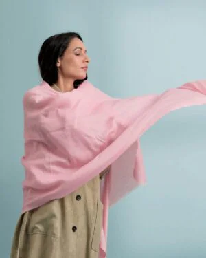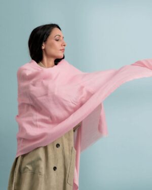 This baby-pink stole, entitled ‘Adalyn’, is a handwoven cashmere stole that can be sported, both ways. Soft to touch and