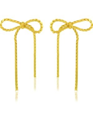 Elevate your style with our Braided Bow Earrings, blending retro styling with contemporary allure. Adorned with luxurious gold plating, these earrings feature a unique bow design crafted from herringbone chain, creating a braided pattern that adds whimsical charm. This intricate detailing symbolizes a fusion of classic charm and playful creativity. With secure post backs for comfort and style, they are perfect for enhancing any outfit with a touch of enduring elegance.