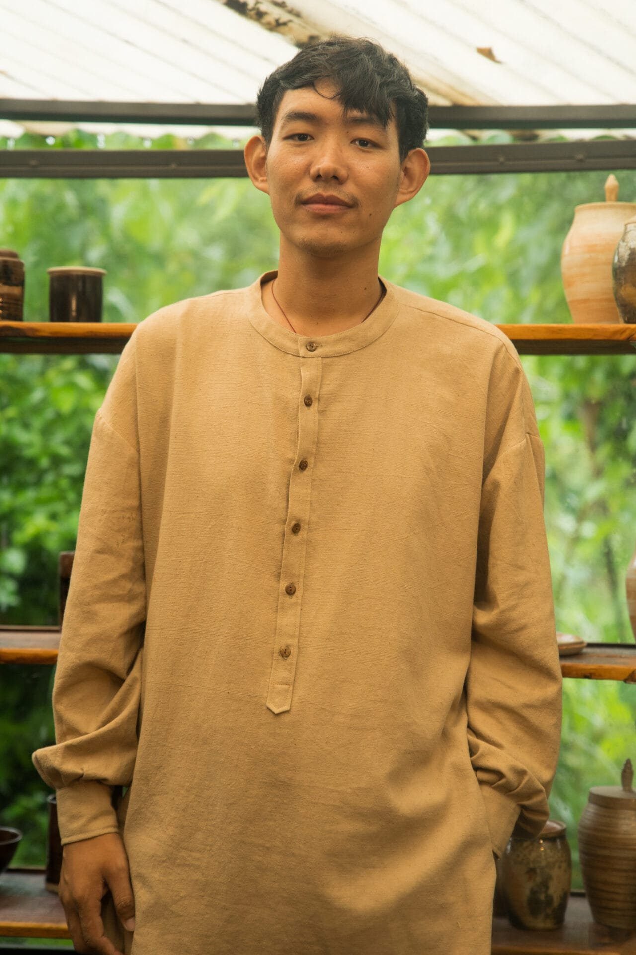 This unisex, breezy cotton shirt is made to sit oversized on the body, but can be ordered in larger sizes to achieve an even more dramatic look. Generous sleeves with a scooped hem, and delicate collar design. Featuring our signature coconut shell buttons and meticulous detailing. Colors available; Craft: Handloom Weaved, Material: Lotus Silk, Return Policy: Non-Returnable, Shipping: 8 to 10 Working Days, Fit: Loose, Occasion: Casual, Sleeve: Yes, Care Description :"Washing Instructions: Fill your bucket with cold water, turn your Lotus silk item inside out, and submerge it. It comes to washing your Lotus silk item, your best bet is to use a high-quality liquid detergent. Add a few detergent drops into the water and stir it well, then leave your item in the solution for three minutes. Gently pull your garment up and down for three to five minutes to remove any dirt. Take your garment out from