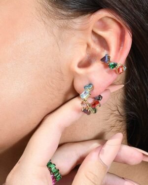 The Chromatic Cascade Ear Cuff is a testament to modern elegance and timeless allure. Fashioned from polished metal and