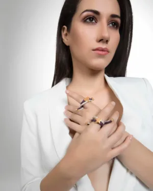 A cluster of Pentas flowers is a symbol of hope and luck in many traditions?and is the inspiration behind our rings. The purple colour symbolises royalty and the Pentas star brings together fortune creating a very unique accessory.