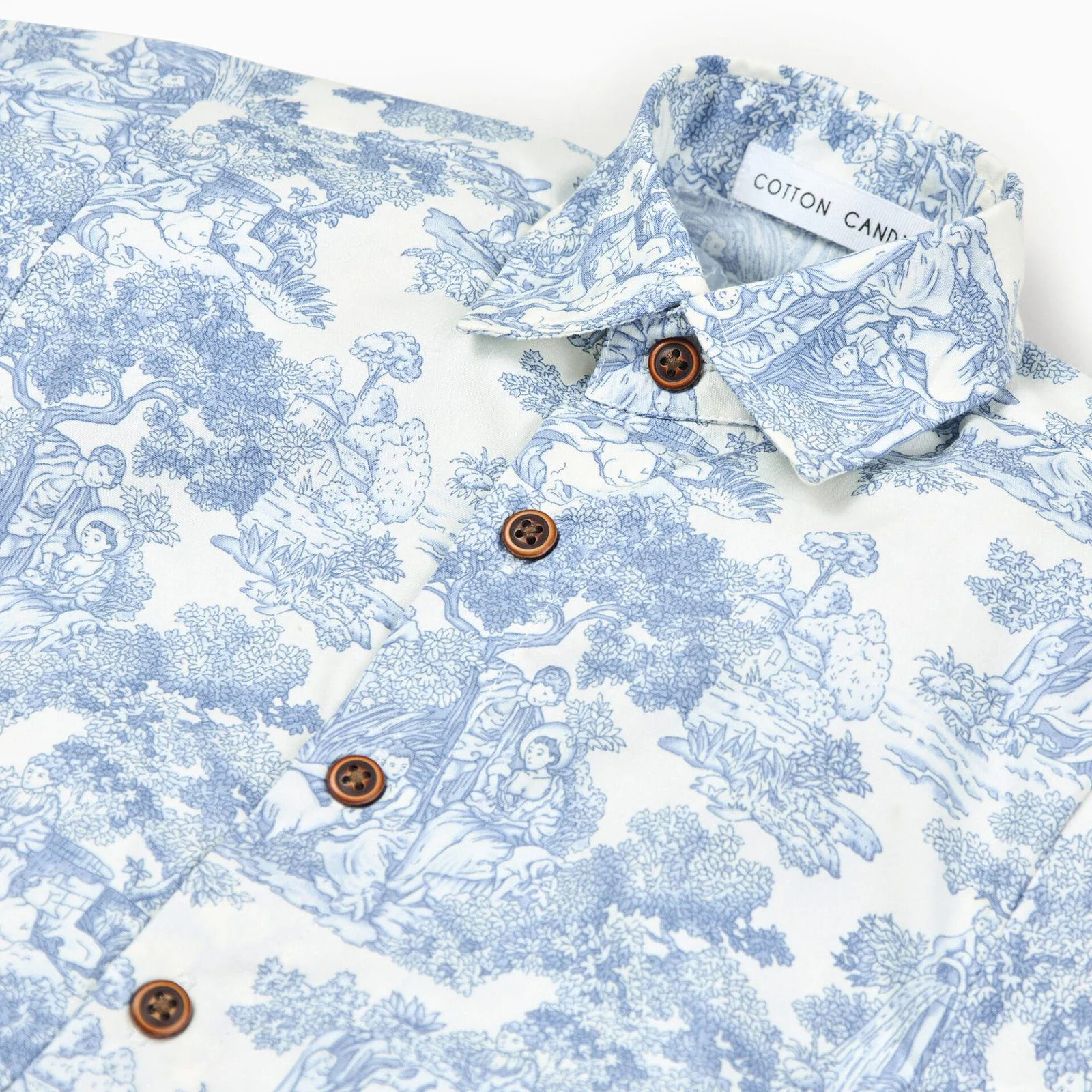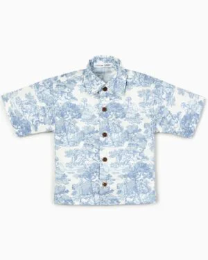 The Country Toile Shirt in Blue is crafted from breathable cotton poplin, offering a lightweight and comfortable feel. Designed with a classic collar neckline and half sleeves, it features a neat button-up closure for easy wear. The printed pattern adds a refined touch, making it perfect for everyday casual outings. Easy to maintain, this shirt can be gently machine washed for regular use.
