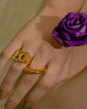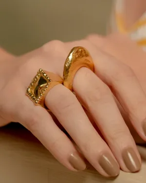 Elegant dome-shaped finger ring crafted with 22KT real gold plating on premium brass alloy.