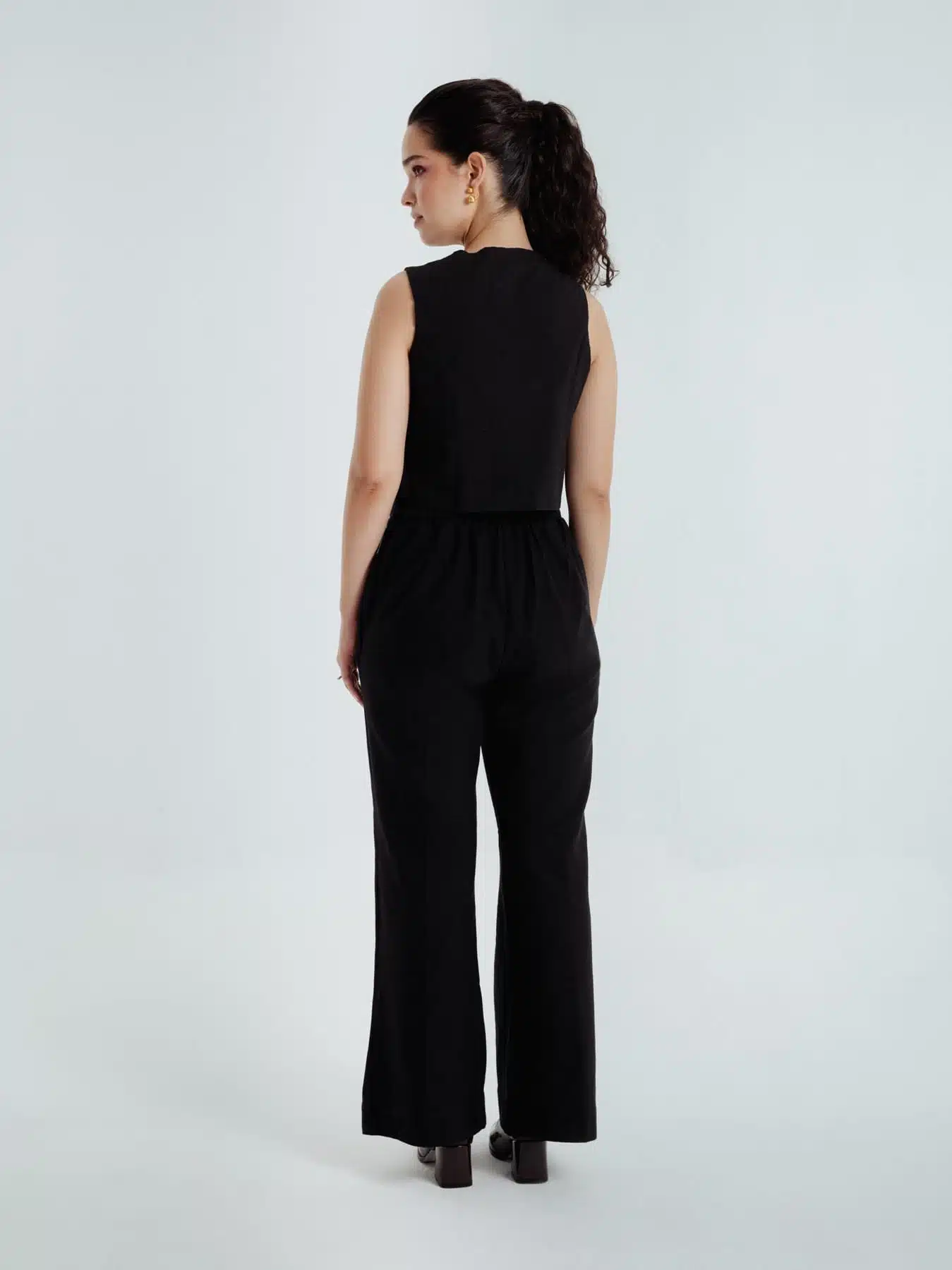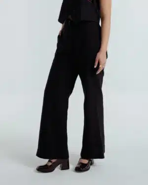 The black pants are a timeless classic, featuring a front zipper, practical side pockets, and a clean, tailored finish. Made from handspun organic cotton, they transition seamlessly from day to night and are especially striking when styled with the waistcoat.Effortless, refined, and rooted in tradition, Fayra is a celebration of heritage, craftsmanship and understated sophistication.Pants length: 40 inchesModel height: 5’7” (wearing size S)